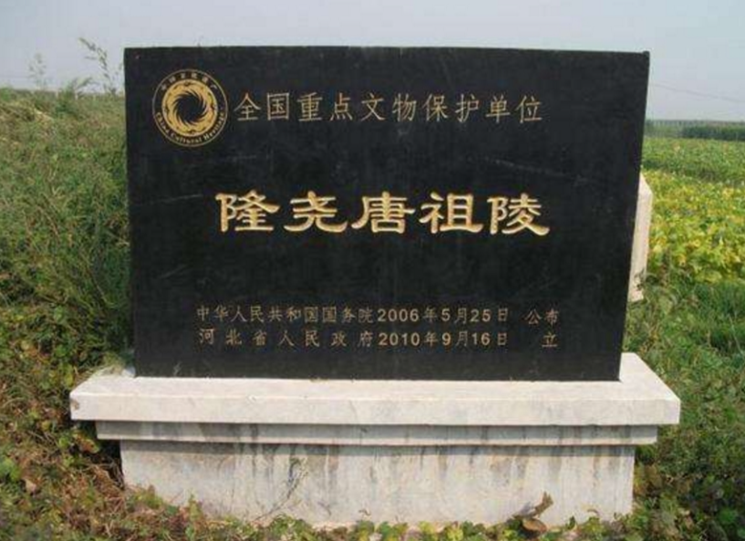 3、景区简介:隆尧唐祖陵位于河北省邢台市隆尧县城南6公里魏庄镇王尹村北200米处。始建于唐贞观二十年(646年),为唐高祖李渊第四代祖宣皇帝李熙的建初陵和三代祖光皇帝李天赐的启运陵,二陵共茔。南北长2030米,东西长2204米,总面积4.47平方公里,所处地势为东、西、北三面较高,南面较低。陵墓葬于北面高地,呈南北向,地上基本被耕地覆盖。隆尧唐祖陵陵墓外围分为三圈:内垣为正方形,外垣为长方形,最外圈由若干夯土台组成,陵园整个布局与唐代长安城布局相似,规制为帝王规格。陵墓附属建筑光业寺出土的碑文详细记载了李唐二祖的生平、追封及建陵建寺之史实,是考证隆尧为李唐祖籍权威的实物证据。由此确认隆尧唐祖陵是大唐皇室祖籍所在地。隆尧唐祖陵是河北省唯一的唐代帝王级别陵寝。