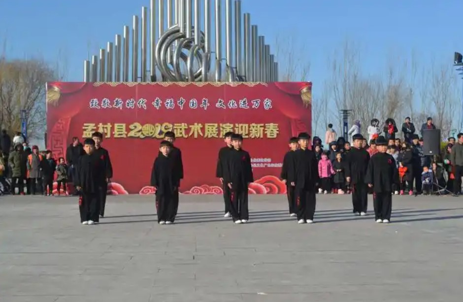 图片来源于网络,如有侵权,请联系告删八极拳展演馆位于孟村八极拳国际培训中心东侧,景区占地约36亩,包含游客接待区、八极游园、八极湖等功能区域。是一座集教学、传承、表演、研讨于一体的现代文化展演中心。展演馆占地9000平米,主体建筑5000平米,一层包括八极拳文化展示区、正厅及东侧展览区,二、三层为多媒体会议室、办公室等配套设施,展演馆训练大厅总面积3000余平方米,设有固定看台及移动看台,可容纳观众2000余人。