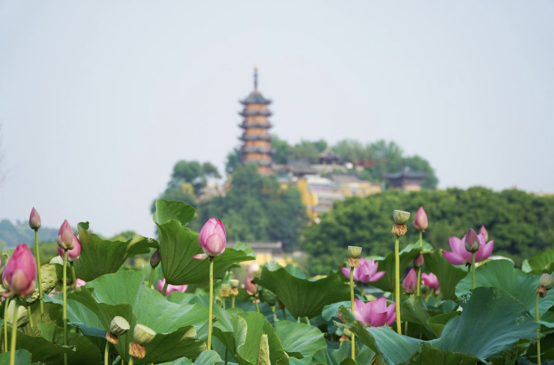 图片来源于网络,如有侵权,请联系告删金山风景区,是国家AAAAA级旅游景区,它是以"京口三山"之首,位于镇江市区西北部,北回归线以北。有44米高, 520米周长,原是扬子江中的岛屿,"万川东注,一岛中立",有江心一朵"芙蓉"之美称。宋朝沈括的"楼台两岸水相连,江南江北镜里天"的诗句,就是对当年金山的写照。金山佛寺建筑风格独特,依山而造,殿宇厅堂,亭台楼阁,椽木栋接,相比相衔,丹辉碧映,加上慈寿塔耸立于金山之巅,拔地而起,突兀云天,使整个金山仿佛就是一座宏伟壮丽的寺庙,构成了一种金碧辉煌"寺裹山"的奇特风貌。