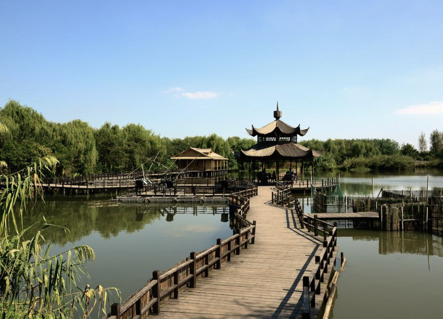 图片来源于网络,如有侵权,请联系告删姜堰溱湖国家湿地公园位于江苏省泰州市姜堰区境内,地处全国著名三大洼地之一的里下河地区,规划面积为806.9公顷,湿地面积588.6公顷,湿地率72.9%,湿地分为湖泊湿地、河流湿地、沼泽湿地等3类,永久性淡水湖泊、永久性河流、草本沼泽等3型。共划分为湿地保育区、湿地恢复区和合理利用区三大功能分区。溱湖国家湿地公园以“水、湿地、生态”为主题,区内的湖泊、河流等占景区总面积37%左右。园内现有各类植物153种,野生动物97种,其中包括麋鹿、丹顶鹤、扬子鳄等国家一级保护动物。