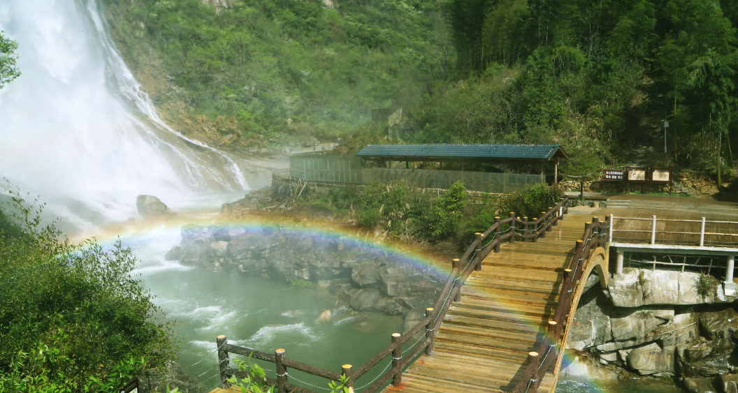 图片来源于网络,如有侵权,请联系告删大别山彩虹瀑布旅游风景区座落于岳西县黄尾镇境内,距岳西县城、霍山县城均为34公里,离G35济广高速黄尾出口1.5公里。旅游景区总面积40平方公里,核心景区面积3.2平方公里,集奇景观光、山水休闲、生态养生、文化体验、户外运动、会议培训、科普教育等多功能于一体,是复合型、时尚化、多功能、全时空的旅游休闲度假胜地。景区内群峰耸立、沟壑纵横,飞瀑流泉,仪态万千,总划分为一带五区,即环大别山彩虹瀑布生态保护带,黄龙岛休闲服务景区、白龙岛亲水拓展景区、猴河漂流体验景区、太极峡谷生态游览景区、栈道览胜观光景区。景区处在黄尾河与猴河流域,水源来自大别山主锋白马尖、天河尖,是大别山暴雨中心,多年平降雨量达1600毫米,径流深达1100毫米,来水面积达60多平方公里,水量充沛,四季不涸,峡谷幽深,水质清澈,潭潭相连,可比九寨沟。极具特色的有华东极具特色的梦彩虹瀑布、飞瀑玻璃眺台和最野趣的原生态太极峡谷等二十多个景点,是国家AAAA级旅游景区、国家水利风景区、中国体育旅游精品景区、全国休闲农业与乡村旅游五星级园区、中国自驾游基地、中国旅游景区品牌示范单位、安徽旅游品牌100强景区、安徽省级体育产业基地、安徽省研学旅行基地、安徽最值得境外人游览的10个地方之旅游区内动静结合,常年开设彩虹瀑布奇景观光、太极峡谷探险、橡皮艇冲浪漂流、采摘、制茶品茗、农事体验、余香岩攀越、滑索,滑道、水上乐园、游船观光,真人CS拓展体验,休闲购物,自助餐饮等旅游项目和服务。