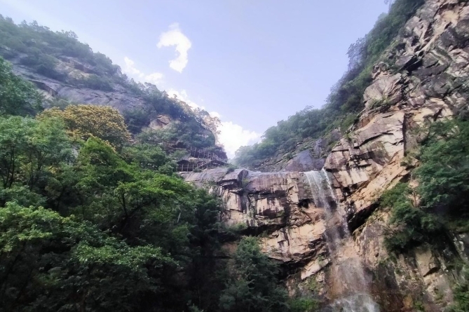 图片来源于网络,如有侵权,请联系告删云露山旅游区是国家AAAA级旅游景区,2012年对外开放,位于内乡县马山口镇境内,面积50平方公里,景区主要以药王文化和明清理学为内涵,以生态观光、休闲度假、养生体验、体能拓展、科普研学、漂流体验为旅游主题。云露山旅游区地处我国南北方古陆的交际带、气候过渡带、动植物交错区,是天然的动植物基因库、亚热带生态环境的博物馆,被誉为大陆动力学的教科书。区内青山叠翠,泉水奔流,飞瀑从天而降,形成连环的飞瀑深潭。尤其是宝塔瀑和药王瀑的瀑布百米以上落差和壮丽美景更是伏牛山罕见的极品景观。旅游区的原始植被看上去满眼翠绿,花香芬芳。峡谷内的溪水穿幽径,历石道,攀台阶,入石洞,瀑潭次第展现,确是一处旅游、度假、避暑的好去处。迄今为止,景区水、山、路、通讯等基础设施建设和重点景观、景点、漂流项目建设等投资额累计已达3.5亿元,修建了15公里的盘山公路和12公里的游步道,高标准建成游客中心、生态停车场、旅游公厕7座、观光瀑布2条、恢复重建了药王庙、拓展培训中心、景区形象山门、漂流上下码头和洗浴中心、停车场、游客中心等。同时配套了旅游接待设施服务,已建成云露山大酒店、高档别墅、快捷饭店饮水服务企业(云露山泉饮用水)等基础配套设施和综合服务设施。景区分五个功能小区:门景服务区、云露河亲水娱乐区、杏树坪养生度假区、药王谷探险体验区、宝塔瀑避暑观光区等基础设施配套建设。