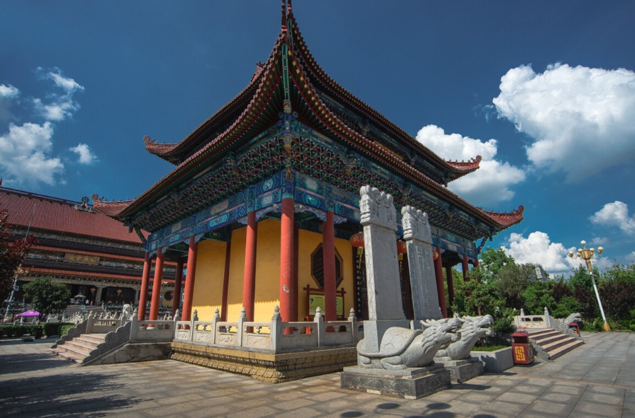图片来源于网络,如有侵权,请联系告删南海禅寺,国家AAAA景区,位于中国河南省驻马店市汝南县县城东南隅,占地500余亩,寺域开阔,建筑浩繁。主体建筑大雄宝殿,殿基2米,平面呈边长80米的正方形,建筑面积达到了6400平米。南海禅寺山门牌楼长50米,高31米。在山门内长500米,宽20米的甬道上,自北向南依次按12因缘、12生肖、12菩萨,建筑了12座花岗岩牌坊,风格独特,巍巍壮观。南海禅寺东北部是白公上人舍利塔院,亭台碑碣错落有致,布局得当。为白公上人建造的舍利塔,以花岗岩质雕刻而成,融中国古代建筑艺术与东南亚现代建塔艺术风格为一体。