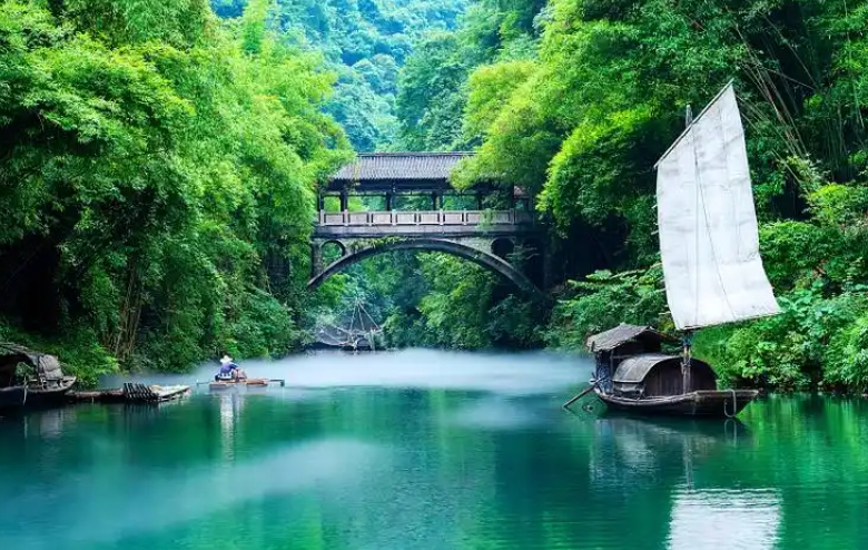 图片来源于网络,如有侵权,请联系告删宜昌市三峡人家风景区,位于湖北省宜昌市长江三峡中的西陵峡境内,三峡大坝和葛洲坝之间,跨越灯影峡两岸,面积276平方千米。宜昌市三峡人家风景区“湾急、石奇、谷幽、洞绝、泉甘”,它包括龙进溪(一说“龙津溪”)、天下第四泉、野坡岭、灯影洞、抗战纪念馆、石牌古镇、杨家溪漂流等景区,融合了地质文化、巴文化、楚文化、土家文化、峡江码头文化和抗战军事文化。其旅游内涵可以用“一二三四”来概括,即:一个馆(石牌抗战纪念馆),两个特别项目(三峡人家风情项目和杨家溪军事漂流项目),三个第一(三峡第一湾——明月湾、中华第一神牌——石令牌、长江第一石——灯影石),天下第四泉——蛤蟆泉。其中三峡人家风情项目又分为水上人家、溪边人家、山上人家、今日人家。