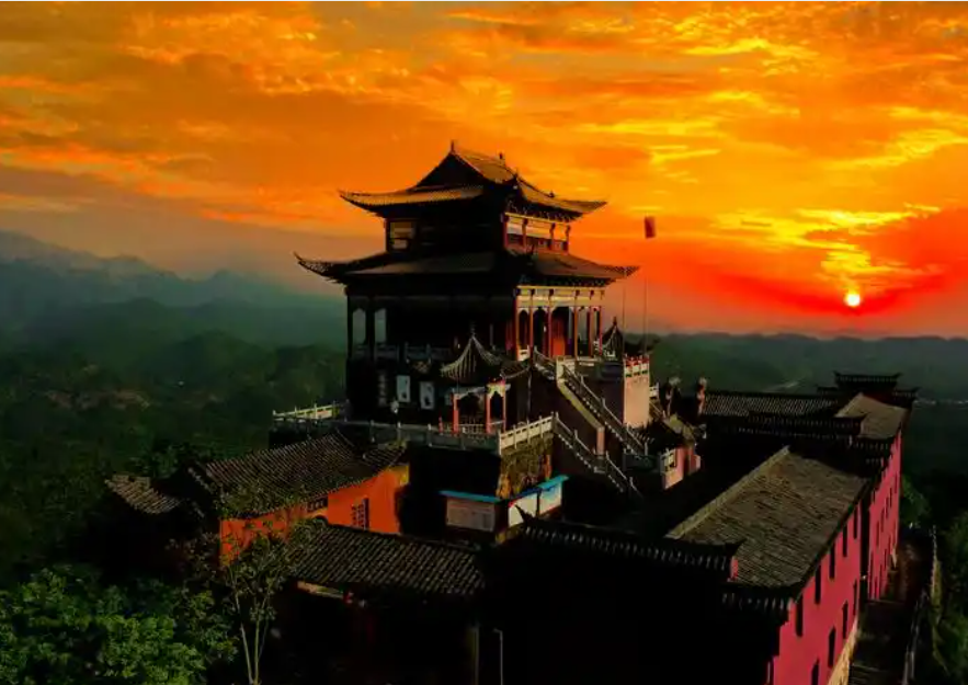 图片来源于网络,如有侵权,请联系告删鸣凤山,国家AAAA级景区,省级风景名胜区,位于湖北省远安县城西3.5公里处,海拔高度408米,相对高度 288米,三面环水,一峰独秀。其道观始建于南北朝梁武帝时期,距今1500多年历史,并与武当山全真派一脉相传,自古就有“武当远、鸣凤险”之称,是集宗教朝觐、丹霞山水观光、穴居度假休闲为一体的道教风景名胜区。