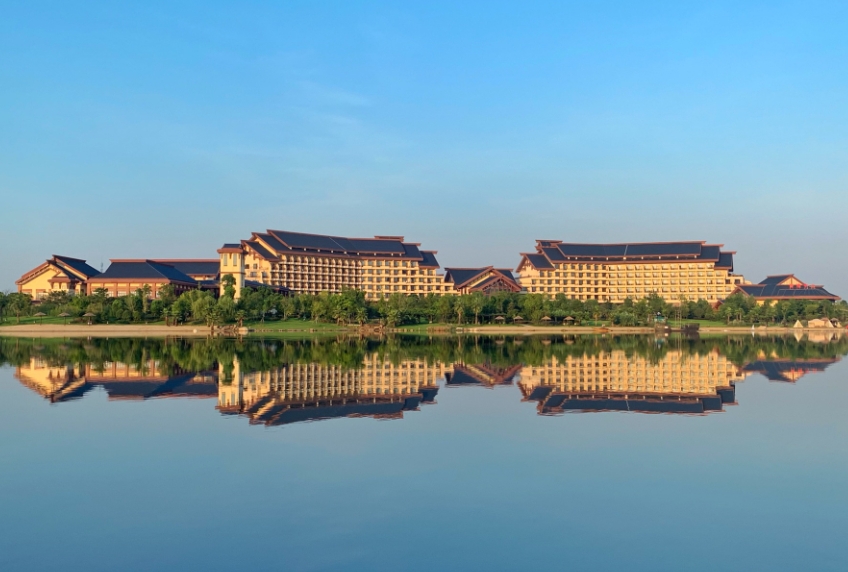 图片来源于网络,如有侵权,请联系告删天屿湖旅游度假区地处汉川市马口镇,其核心产品是天屿湖假日酒店,建筑面积近12万平方米,坐落于拥有3300亩湖面水景的天屿湖核心湖畔,形似一只展翅高飞的海鸥。酒店紧邻汉蔡高速,出行便利。酒店拥有四百余间(套)面积53平方米起的豪华客房及4栋独立临湖温泉别墅,均设有落地玻璃窗及私人阳台可让您收藏天屿湖最美的景致。亲子主题房、室内外儿童乐园、湖畔沙滩等让您陪孩子一起欢度美好时光。面积2600平方米的宴会及会议中心,1000平方米的户外草坪,专业的会议管家和策划团队全程跟进,确的中西餐厅带给您精致的美食体验。国内外罕见的硒锶养生温泉,国际标准室内泳池及室外游泳池、健身房、网球场、篮球场、羽毛球馆、壁球室等多种专业运动场地助您放松身心,保持活力。酒店另配有豪华游艇会所、绿地运动公园、奢华时尚的KTV包厢、蕴藏东南亚风情的纯正泰式SPA会所、扬州风格的特色足浴,茶艺吧、红酒吧、图书馆、棋牌室及VR超级体验馆等休闲娱乐设施,是汇集“吃住泡、游玩养”于一体的东南亚热带风情度假酒店。
