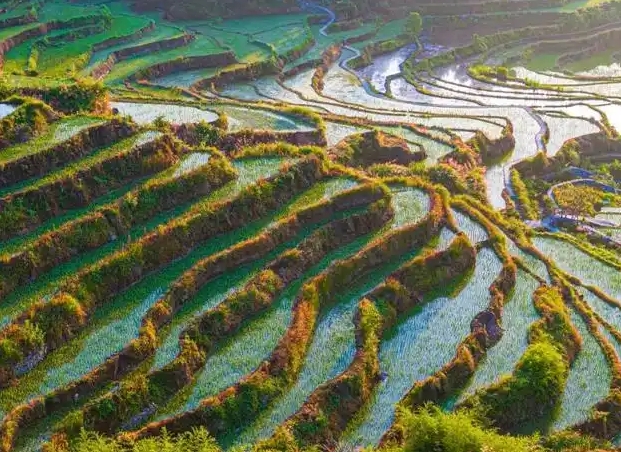 图片来源于网络,如有侵权,请联系告删雾云山生态旅游区主体位于蕲春县檀林镇雾云山村,与英山百丈河村交界。这里地处深山,风景秀美,有著名的雾云山梯田。雾云山梯田传说是唐朝时期开挖,有800多年的历史。这里海拔600米,总面积约110亩,分为310块小田,层叠错落,有序规整地排列在山坡上,最高处与最低处的落差达120米,气势磅礴,四季皆景。整个田原具有较高的艺术欣赏价值和审美价值,被摄影界堪称为华中地区可同世界文化遗产——云南元阳梯田相媲美的自然梯田景观。