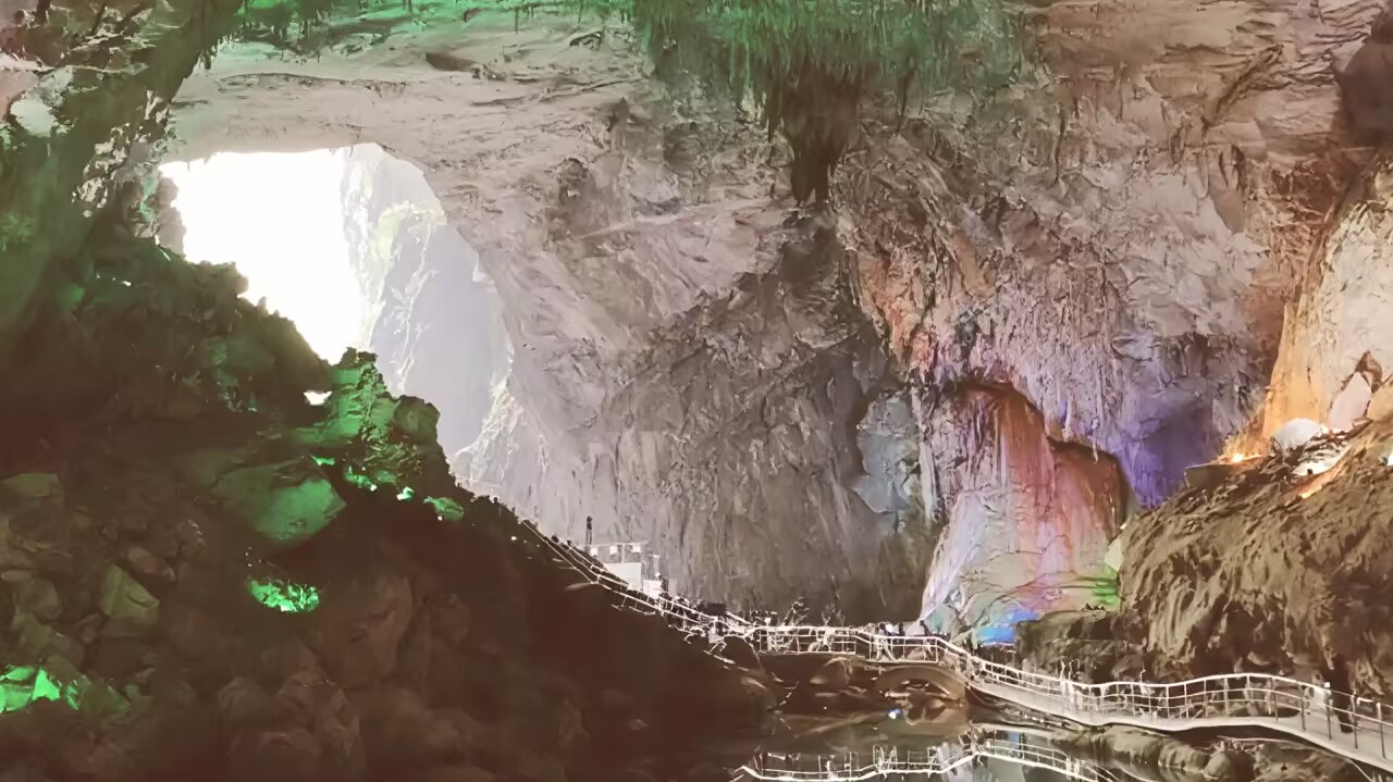 图片来源于网络,如有侵权,请联系告删波月洞位于湖南省冷水江市北郊,距离冷水江市区3公里。波月洞分为三层,已开发地下游览1800余米,有27个大厅,81处景点,总面积40000多平米。波月洞风景名胜区为国家3A级景区、省级地质公园,有“世界溶岩博物馆”的美誉,洞内著名景观有:猴王宝座、巨型石坝、空心鹅管群、神猴送客等。86版杨洁导演的《西游记》和电视剧《刘海砍樵》在此拍摄取景。