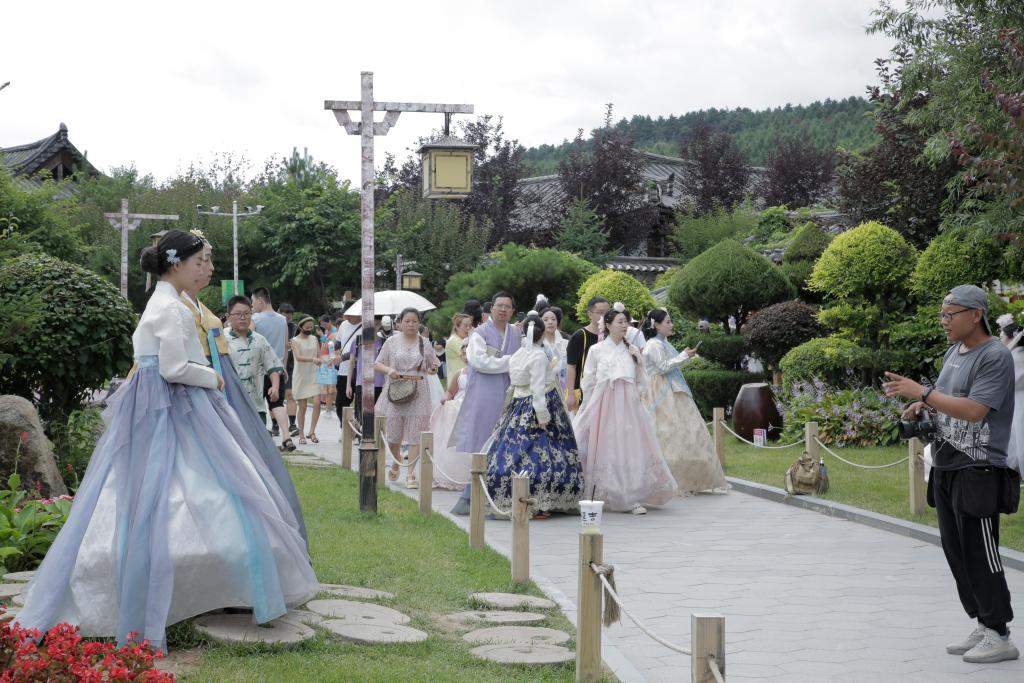 3、景区简介:中国朝鲜族民俗园以9栋百年朝鲜族传统民居为核心,完整复刻朝鲜族古村落风貌,是集服饰体验、文化展演、美食制作和传统体育项目于一体的综合型民俗旅游目的地。园区分为入口广场、传统民宅展示区、农耕生活体验区等七大区域,游客可穿着朝鲜族服饰在青瓦白墙间拍照,参与打糕制作、象帽舞学习等互动活动。景区通过沉浸式场景设计,将非遗文化与现代旅游结合,2024年入选抖音用户欢迎的十大景区第五名。