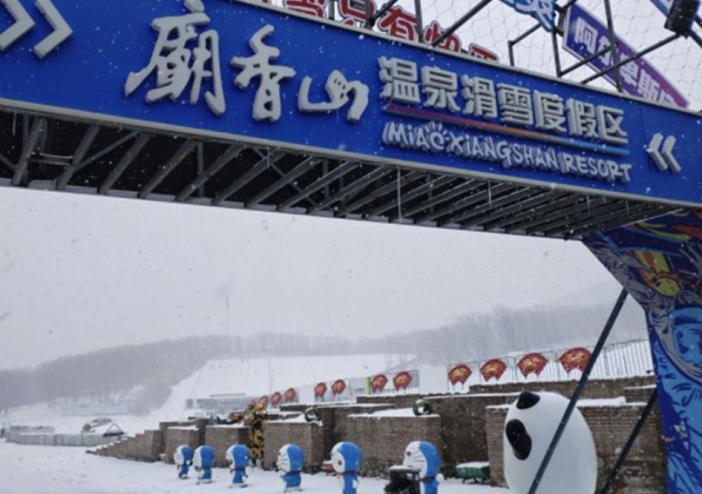 3、景区简介:庙香山滑雪场位于长春市九台区波泥河镇,毗邻龙嘉国际机场,主峰海拔479米,最大落差248米,自然生态覆盖率87%。滑雪场建有初/中/高级雪道13条(总长超13公里)及12公里越野雪道,配备高速索道、魔毯等设施,形成四季综合运营体系。2024年完成中级雪道坡度改造与夜场灯光系统升级,新增20余处网红打卡景观,并首创"小庙夜滑"品牌,通过夜间滑雪社交场景延伸冬日夜经济。该滑雪场于2024年11月19日同步开放日场(8:30-16:00)与夜场(17:30-21:00)服务,2023年12月入选全国十大冰雪旅游精品线路。
