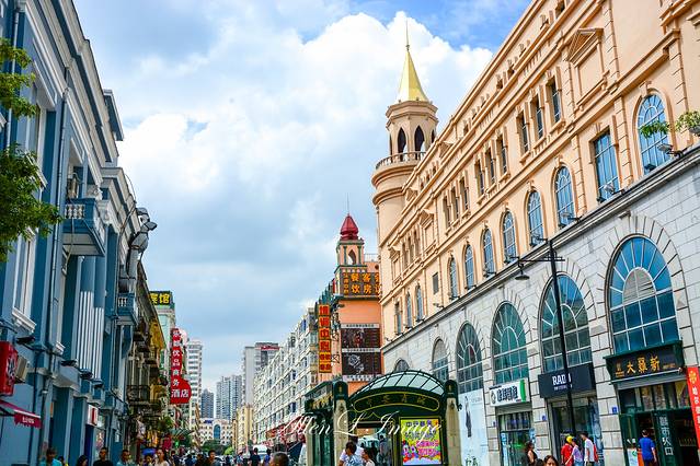 中央大街全长1450米,是亚洲最长的百年欧式建筑艺术长廊,汇集71栋巴洛克、文艺复兴等风格的历史建筑。路面铺筑的“面包石”每块价值1银元,被誉为“黄金铺路”。核心景点包括马迭尔宾馆(新艺术运动建筑代表)、华梅西餐厅(百年俄式西餐老字号)和中央书店(文艺复兴风格穹顶)。