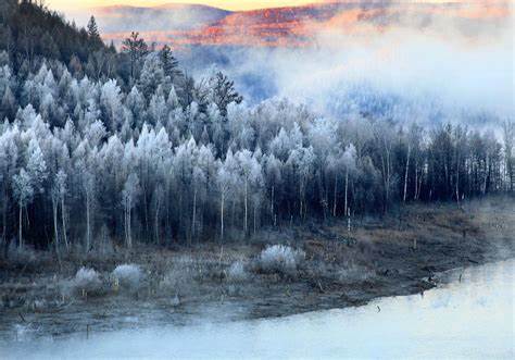 3.景区简介:大平台雾凇景区是逊克县最具代表性的自然景观,位于克林镇境内,依托库尔滨水电站下游形成的独特气候条件,每年11月下旬至次年3月,长达4个月的雾凇观赏期使其成为“中国逊克雾凇之乡”的核心区域。景区面积50平方公里,每日雾凇持续时间超10小时,雾凇形态千变万化,如珊瑚、羽毛、花朵般挂满枝头,被誉为“北国雾凇之都”。清晨阳光照射下,冰晶折射出五彩光芒,搭配雪原、林海与黑龙江冰封江面,形成“夜看雾、晨看挂、午看落花”的奇幻景观。