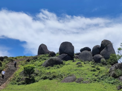 图片来源于网络,如有侵权,请联系告删五皇山,原名叫“五皇岭”,五皇山是著名的国家地质公园,五皇山景区主要位于浦北县龙门镇境内,距离县城32公里,钦州135公里,南宁200公里,北海110公里。景区面积40平方公里,由高山草坪、高山茶园、高山梯田、溪流瀑布、亚热带季雨林、花岗岩奇石等自然景观和社戏傩舞人文景观构成,有平均海拔700米的9个主峰(最高峰青山顶778.8米),分为人头石、妹追寨、石柱岭三个相对独立的景域,拥有全国最大的11.38万亩连片天然次生红椎林,具有“山高林茂、草绿石奇、谷幽水秀、雾浓云美、民俗奇异”的特点,是一个集观光旅游、休闲度假、风情体验于一体的国家AAAA级旅游景区。