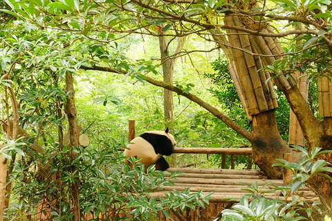 3、景区简介:成都大熊猫繁育研究基地基地总面积达3570亩,其中扩建区面积为2535亩。基地以造园手法模拟大熊猫野外生态环境,大熊猫产房、熊猫饲养区、科研中心、熊猫医院分布有序,若干处豪华熊猫“别墅”散落于山林之中。扩建区充分遵循并沿用原始地形地貌,利用山体冲沟及溪流形成山地溪谷多层次景观带;根据熊猫主题特点,将项目总体划分为多个区域。
