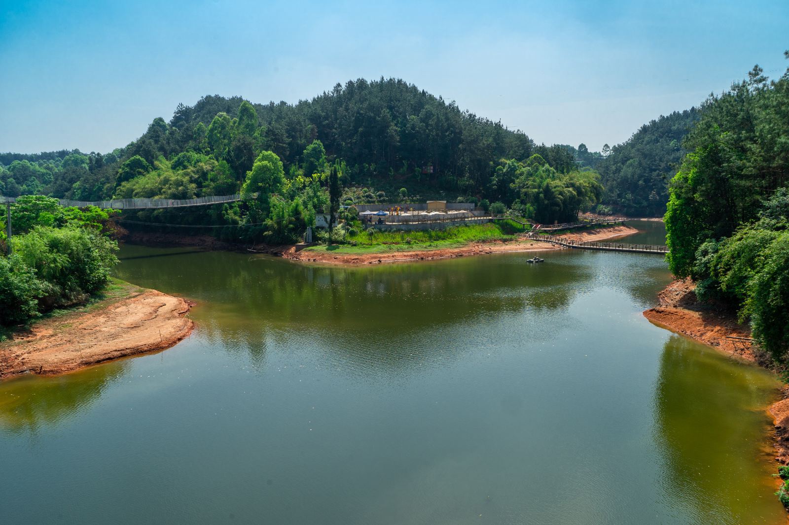 3、景区简介:自贡市尖山风景区坐落于自流井区荣边镇境内,距市中心 10 公里 。景区总面积 5 平方公里,森林覆盖率达 60% 以上,山青、水秀、沟深、谷幽,是一处以森林生态和自然水景为主要特色的风景区。这里群山环抱,山峦起伏,拥有大小水库、塘堰 10 余处,水域面积 40 多万平方米 。尖山主峰海拔 497.7 米,地势险要,登顶可俯瞰自贡城区风貌。游客可以在景区内漫步于林间小道,呼吸清新空气,感受大自然的宁静与美好;还能在清澈的湖边垂钓,享受悠闲时光;或是选择划船项目,穿梭于山水之间,欣赏湖光山色 。此外,景区内设有农家乐,提供当地特色农家菜肴,让游客在游玩之余品尝地道美食。