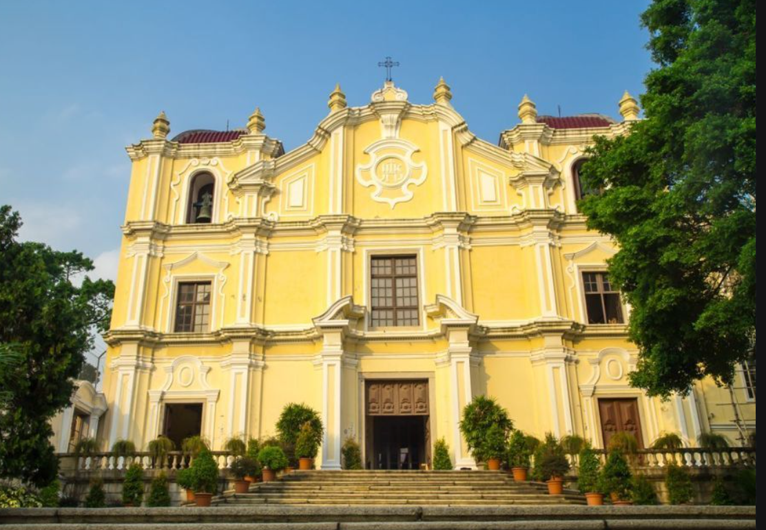 3、景区简介:花地玛圣母堂是澳门最具代表性的宗教建筑之一,建于1929年,是为纪念葡萄牙花地玛圣母显现而建。教堂建筑风格融合了欧洲古典与澳门本土特色,外观简洁庄重,内部装饰精美,尤其是其彩色玻璃窗和祭坛设计,展现了浓厚的宗教艺术氛围。每年5月13日,这里会举行盛大的花地玛圣母巡游活动,吸引大量信徒和游客参与。