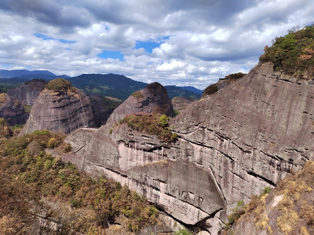 图片来源于网络,如有侵权,请联系告删八角寨景区是资源县文旅局首推的丹霞地貌标杆,总面积40平方公里,2024年携程评分4.8/5,年接待游客超80万人次。核心亮点包括:地质奇观:130余处丹霞峰丛、峰柱、赤壁组成“鲸鱼闹海”奇观,主峰海拔818米,崖壁落差达400米,被《中国国家地理》评为“中国最美七大丹霞”之一;文化体验:常态化举办“五色迎宾礼”“山顶聚福诵经”活动,设天宫寺祈福、非遗漆扇DIY工坊,入选“广西十大研学旅行基地”;户外运动:打造古木冲飞拉达(亚洲最长丹霞崖壁攀岩线)、云中漫步玻璃栈道、丛林穿越等20余项极限运动,获评“中国体育旅游精品景区”。
