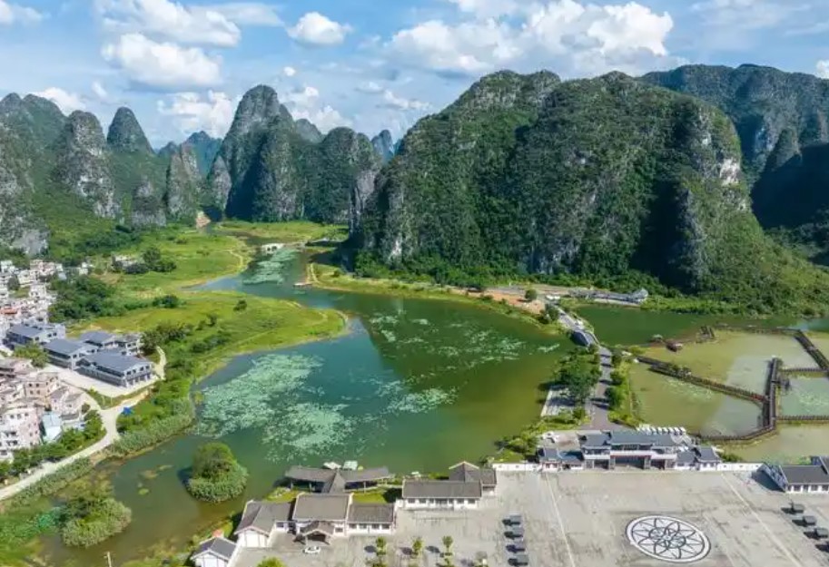 3、景区简介:钟山百里水墨画廊是钟山县文旅局首推的核心景区,总面积36平方公里,2024年携程评分4.7/5,年接待游客超60万人次。核心亮点包括:自然奇观:喀斯特峰林与荷塘田园交织,公婆山奇石被《中国国家地理》评为“中国十大最美峰林”;文化融合:景区内复现壮族三月三嘹歌对唱、非遗门唻歌展演,2025年新增全息投影《千年句町》夜游项目;影视IP:《酒是故乡醇》等30余部影视剧取景地,方家茶园、仙姑瀑布成网红打卡点。