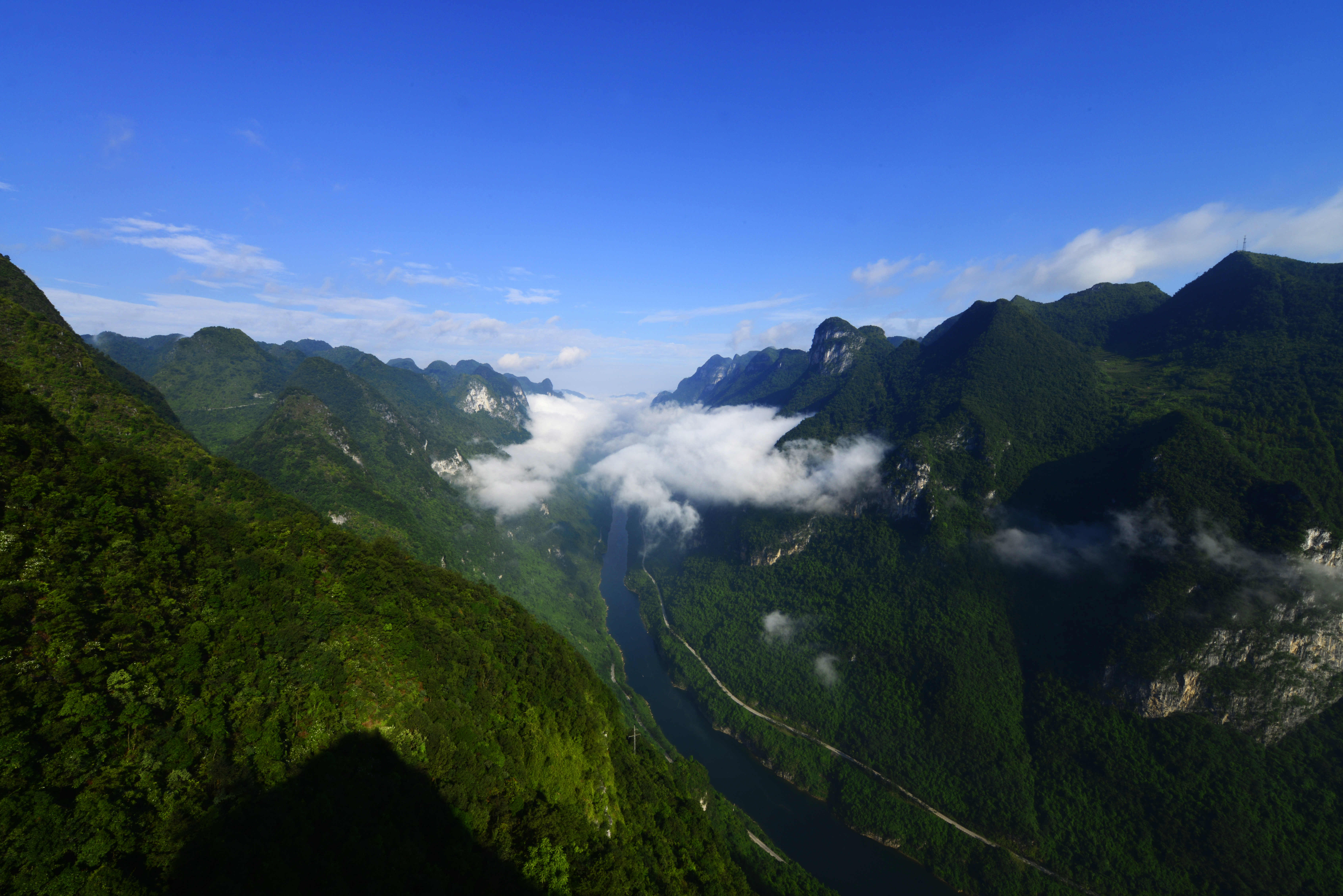 3、景区简介:龙滩大峡谷是天峨县文旅局首推的核心景区,总面积41.72平方公里,2024年携程评分4.8/5,年接待游客超70万人次。核心亮点包括:自然奇观:全长15公里的V形峡谷深达800-1000米,两岸峰丛如“漂浮在城市上空的原始森林”,被《中国国家地理》评为“中国最壮美河谷”;生态秘境:森林覆盖率96.41%,拥有桫椤、金花茶等国家一级保护植物及猕猴、锦鸡等珍稀动物,负氧离子浓度超城市百倍;工业地标:毗邻龙滩水电站(世界第二大水电站),可俯瞰216米高的碾压混凝土大坝与高峡平湖景观。