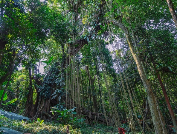 图片来源于网络,如有侵权,请联系告删百花岭瀑布似一道银链悬挂在山间,水流顺崖而下,飞珠溅玉形成四级瀑布,百花岭上古木参天,还有猴子、野鹿等珍贵野生动物。从琼中县城至百花岭的环山公路已经通车,去百花岭观瀑很方便。
