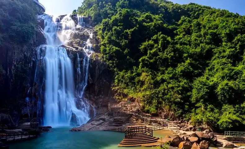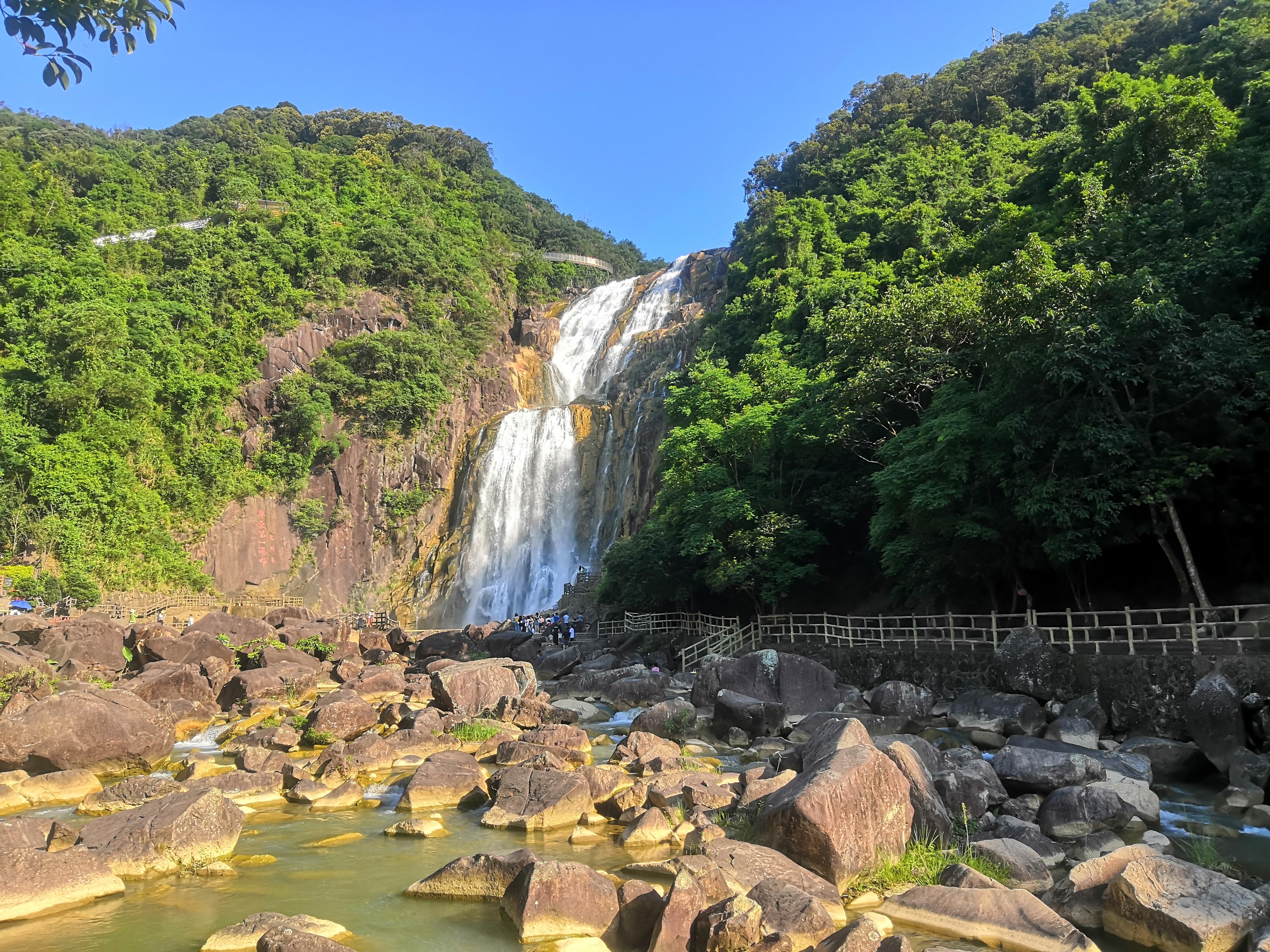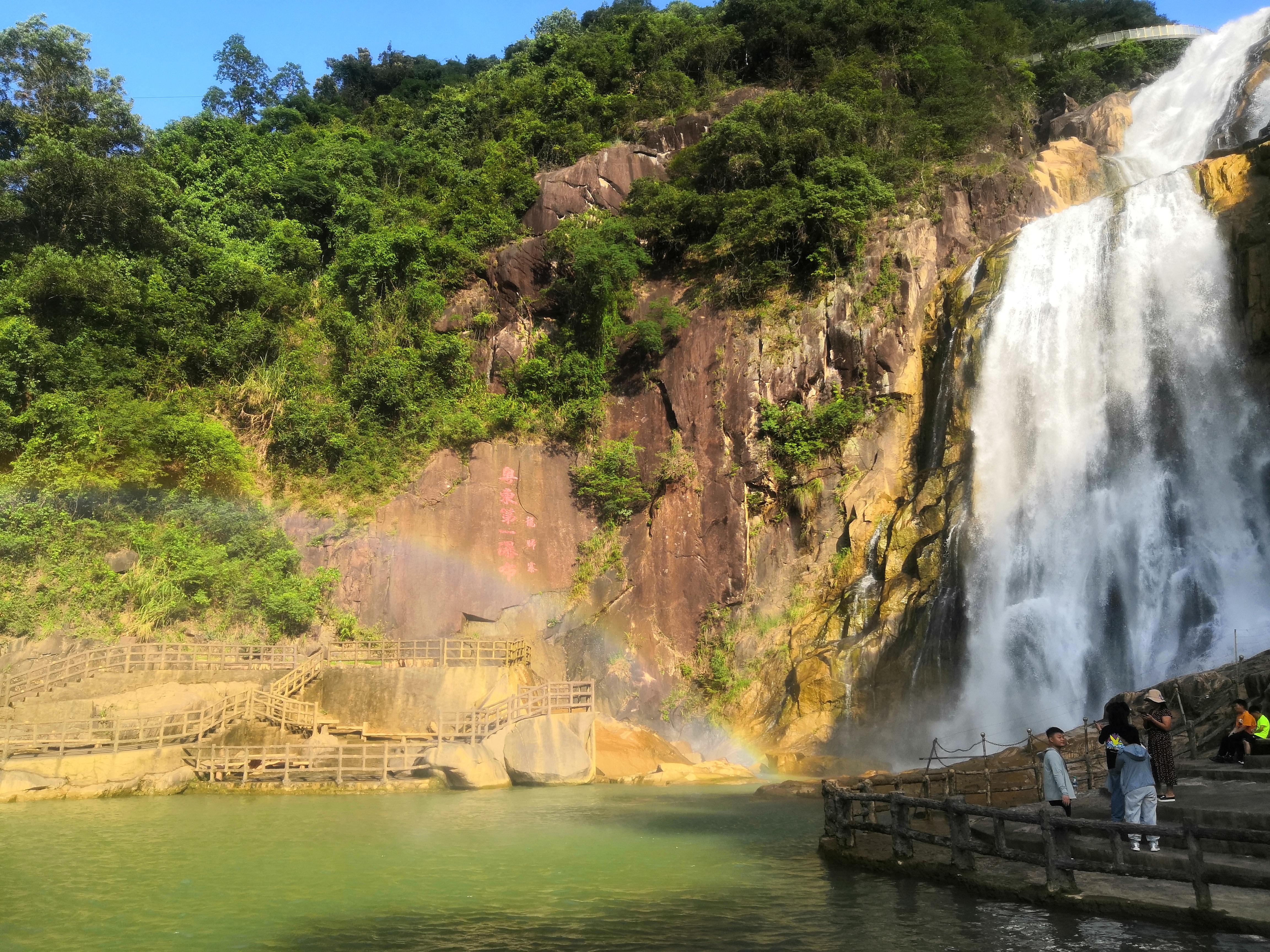 3、景区简介:龙归寨瀑布,以落差123米的飞瀑奇观为核心,2024年接待游客超150万人次。核心亮点包括:自然奇观:百米高空瀑布(朱熹题刻“落汉鸣泉”摩崖石刻)、玻璃漂流道(粤东最长高空水滑道)、登山栈道(360度观瀑平台);生态互动:呐喊声泉(声控喷泉)、踏踏船(峡谷亲水体验)、梯田瀑布戏水区(亲子互动区);文化融合:农家乐自助餐(本地食材)、非遗展演区(埔寨火龙文化展示)。