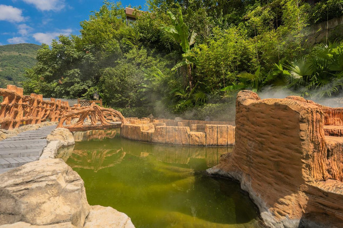图片来源于网络,如有侵权,请联系告删温泉水源自地下1700 米深处,出水温度达 58℃,日出水量 2000 余吨,属偏硅酸型温泉,富含锶、锂、锌、硒等多种对人体有益的微量元素,具有极高的养生保健价值。景区内设有 50 余个风格各异的温泉泡池,分为中药养生区、动感水疗区、私密汤屋区、情侣泡池区等多个区域。游客可在享受温泉滋养的同时,欣赏六广河大峡谷的壮丽景色,感受大自然的宁静与美好。