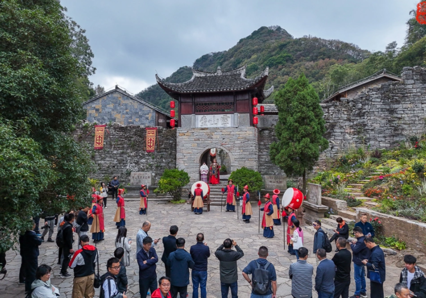 3、景区简介:云山屯古建筑群,位于贵州省安顺市西秀区七眼桥镇云山屯村,始建于明代初年,是一处保存较为完整的古代军屯村寨建筑。云山屯古建筑群分为云山屯和本寨两部分,是一处保存较为完整的古代军屯村寨建筑。屯寨内的屯墙、街巷、宅院以及自然生态环境保存完整。云山屯坐落于云鹫山峡谷中,山势险峻陡峭,古树浓荫,只有一条盘山古道可以进入。云山屯是一个封闭式的屯堡,数公里的石墙蜿蜒起伏,入口处高耸着歇山顶的箭楼,在险要之处设有14个碉楼。一条东西向的主街纵贯全村,数条弯曲的小巷把若干院落串联起来,有民居、店铺、庙宇、戏楼和碉楼。寨内碉楼林立,街巷相连,户户相通,8座碉楼形成掎角之势,从不同角度控制屯堡的制高点。各条巷道的交汇处均成“丁”字形,在此可以控扼三方。巷道狭窄,院墙高耸,射击孔及观察孔随处可见。云山屯、本寨及周围屯堡的建筑,把江南风格与当地石头建筑结合起来,形成了石头道路、石头墙,石头屋基、石头房,石头碾子、石头磨、石头碓窝、石头的缸,与周围的喀斯特地貌浑然一体。云山屯古建筑群大多为明清两代所建,具有较高的文物、艺术、观赏价值。