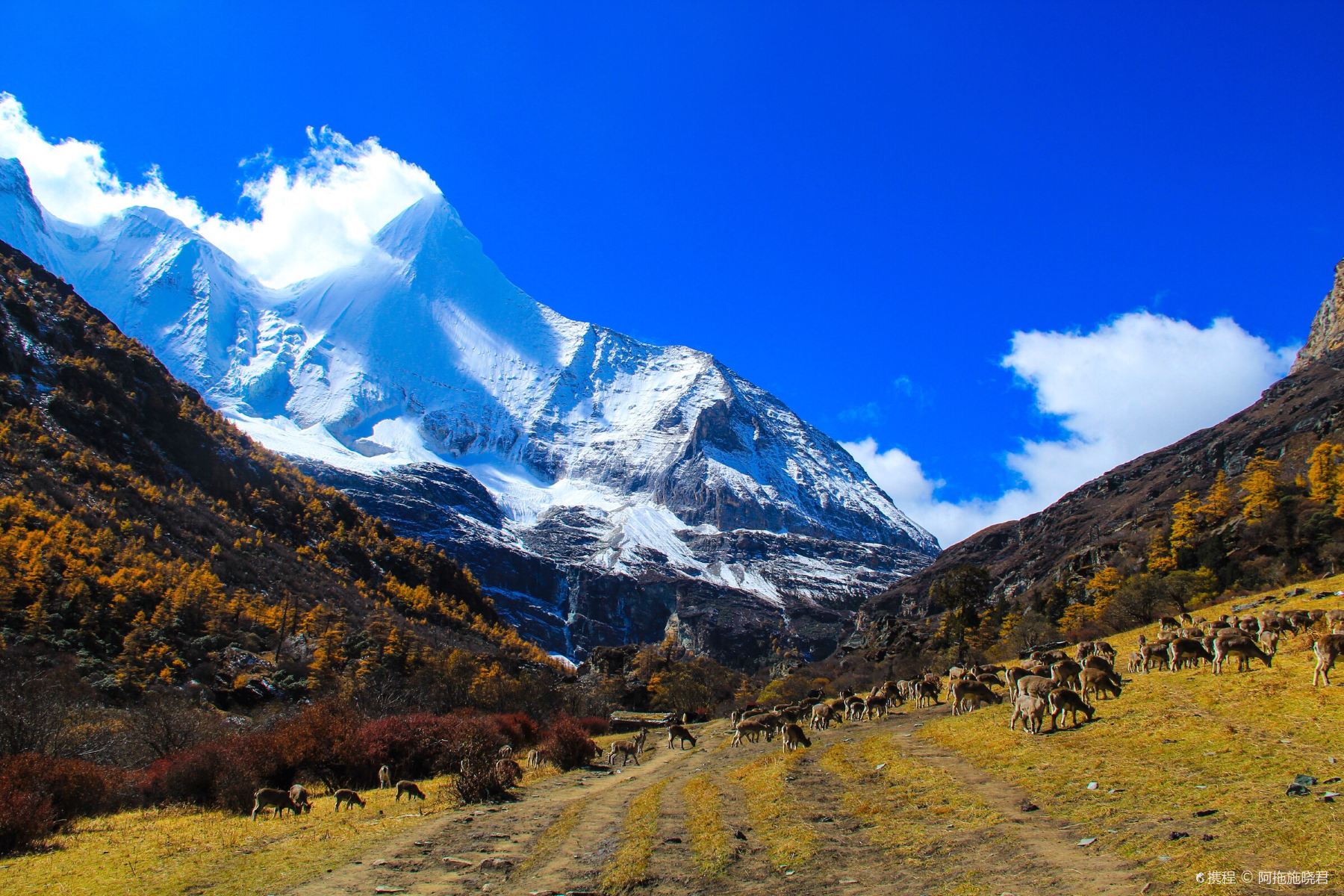 图片来源于网络,如有侵权,请联系告删稻城亚丁景区为国家 5A 级旅游景区,总面积 1344 平方公里,集雪山、冰川、湖泊、森林、草甸于一体,主峰仙乃日海拔 6032 米,是四川第五高峰。景区以 “三怙主神山”(仙乃日、央迈勇、夏诺多吉)为核心,藏民视为朝圣圣地;三大圣湖(牛奶海、五色海、珍珠海)倒映雪山,美如仙境;洛绒牛场、冲古草甸等景观展现高原生态的原始魅力。美国探险家约瑟夫・洛克曾在此探秘并通过《国家地理》向世界揭开其神秘面纱,英国作家詹姆斯・希尔顿据此创作《消失的地平线》,奠定 “香格里拉” 文化符号。