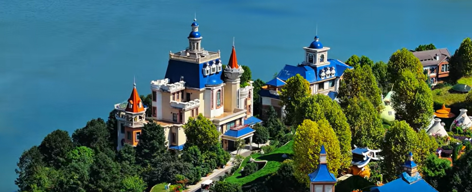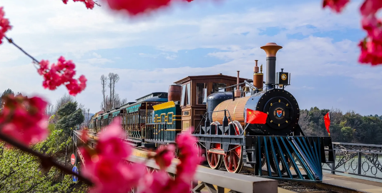 3、景区简介:凤龙湾国际旅游度假区为国家4A级景区,以“童话世界”为主题,含阿拉丁小镇、山海鸟兽乐园、一朵云艺术宫等特色项目。游客可乘坐湖光游船、时光火车穿梭于湖泊与森林间,体验“水陆空”立体游览。景区内设萌宠互动、稻田艺术区,2025年新增星空露营基地,吸引亲子家庭与年轻游客。