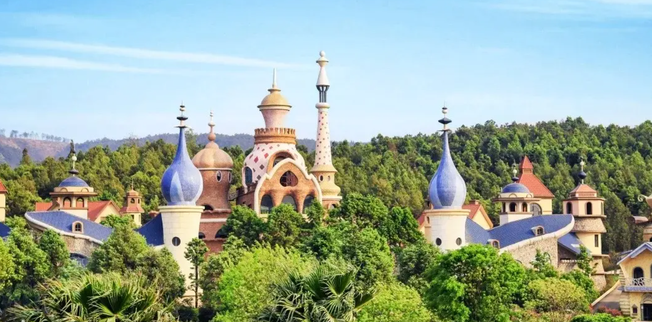 图片来源于网络,如有侵权,请联系告删凤龙湾国际旅游度假区为国家4A级景区,以“童话世界”为主题,含阿拉丁小镇、山海鸟兽乐园、一朵云艺术宫等特色项目。游客可乘坐湖光游船、时光火车穿梭于湖泊与森林间,体验“水陆空”立体游览。景区内设萌宠互动、稻田艺术区,2025年新增星空露营基地,吸引亲子家庭与年轻游客。