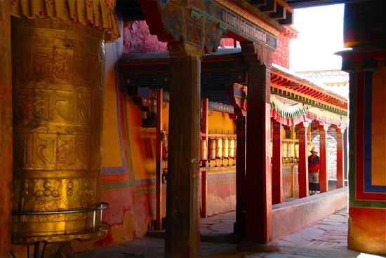 图片来源于网络,如有侵权,请联系告删昌珠寺位于山南雅砻河东岸的贡布日山南麓,距乃东县约二公里,属格鲁派寺院。建于松赞干布时期,据说文成公主曾在该寺驻足修行。寺中悬挂有一口铜钟。昌珠寺系吐蕃时期第一批兴建的佛教寺庙之一,重要建筑有大门、“乃定学”、措钦大殿名“乃定当”,大殿主像是莲花生。措钦大殿东西长45米,南北宽29米,里边有天井天棚,经堂有柱64根,主要佛殿三间,形式与拉萨大昭寺差不多。殿内有12座佛堂。