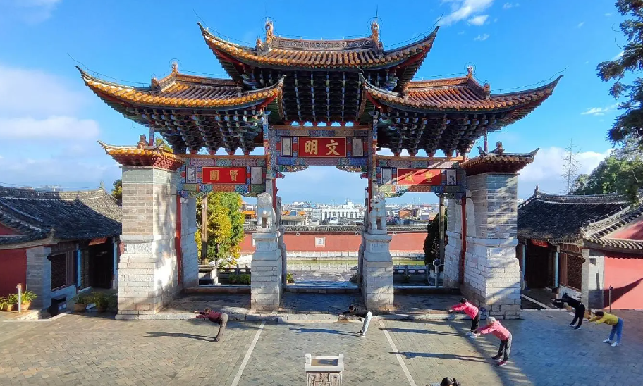 3、景区简介:秀山历史文化公园是国家AAAA级旅游景区,以“秀甲南滇”闻名,集自然风光与古建筑群于一体。景区占地7.6平方公里,现存宋、元、明、清古建筑20余处,包括清凉台、普光寺、玉皇阁等,古树名木与亭台楼阁相映成趣。登顶可俯瞰杞麓湖全景,四季景色各异:春有山茶争艳,夏享林间清凉,秋观层林尽染,冬赏云雾缭绕。景区内碑刻楹联丰富,文化底蕴深厚,是研究云南古代建筑与儒家文化的重要窗口。