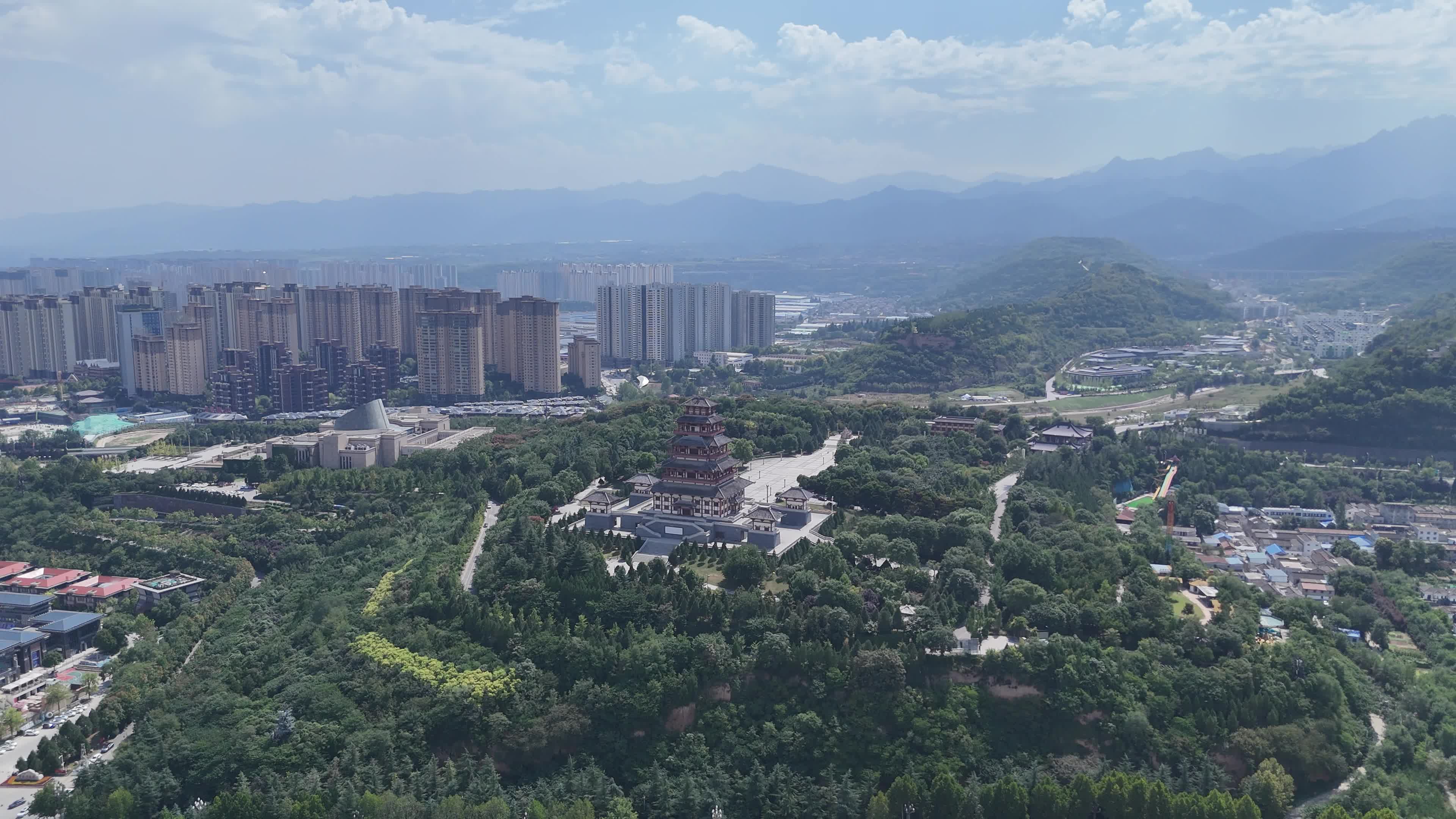 图片来源于网络,如有侵权,请联系告删中华石鼓园位于宝鸡市石鼓山上,东临茵香河,南靠秦岭主峰鸡峰山,西望市区,北瞰渭河,占地500余亩,是国家4A级旅游景区。景区以“遗址保护、青铜器展览、石鼓文化展示、园林观光、考古研究和休闲娱乐”为一体。
