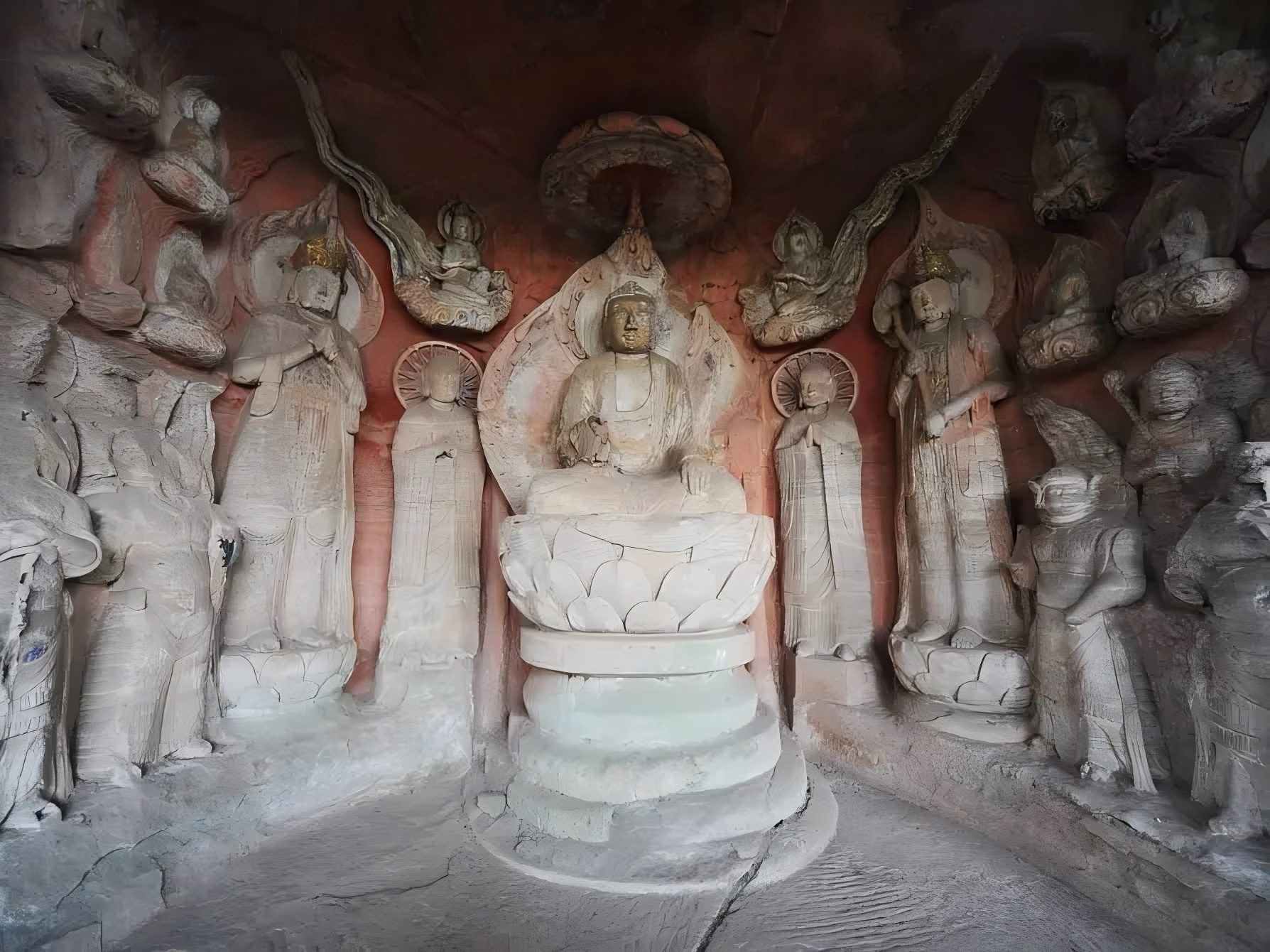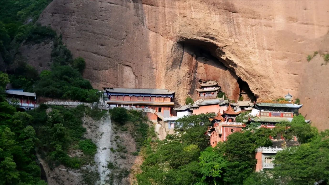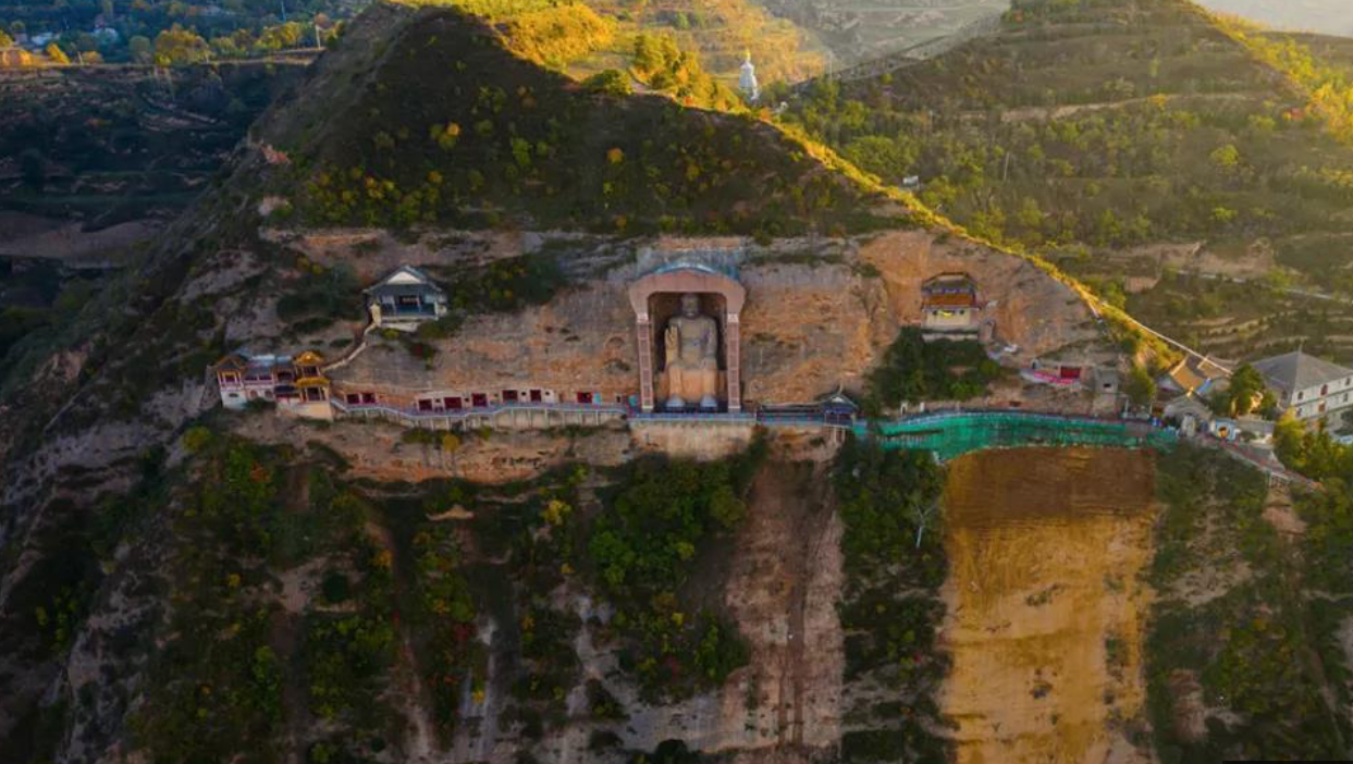 图片来源于网络,如有侵权,请联系告删大像山景区位于甘肃省天水市甘谷县大像山镇五里铺大像山,是国家4A级旅游景区、全国重点文物保护单位。山体呈旗形纵贯南北,现存22个窟龛及北魏至唐代开凿的释迦牟尼石胎泥塑大佛,佛像高23.3米,肩宽9.5米,窟顶呈圆拱形并残存悬塑飞天造像,属古丝绸之路上融石窟与古建为一体的文化遗存。景区占地面积约640亩,自山脚至山顶建有1.5公里石阶步道,沿途分布松桧丛林、丁香花带及依山而建的亭台楼阁。核心景观包含禅窟、大圆拱龛等特殊窟龛结构。