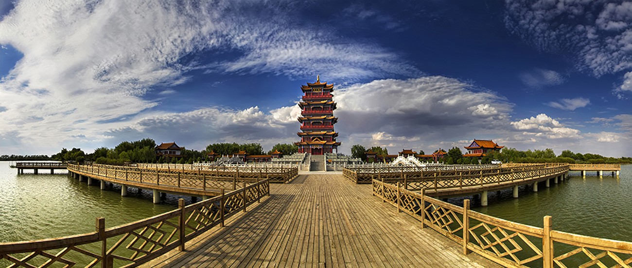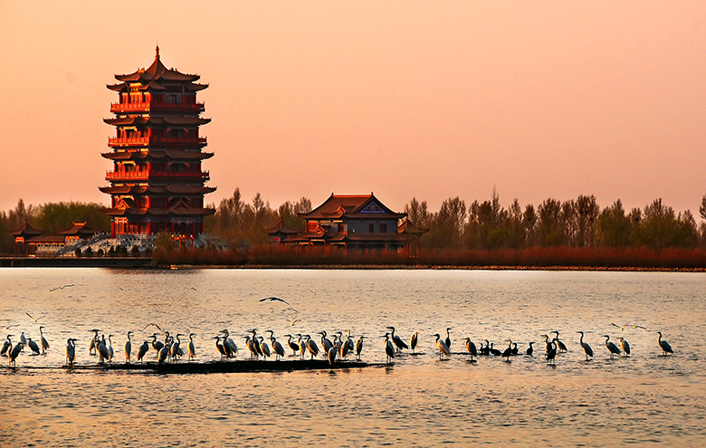 图片来源于网络,如有侵权,请联系告删大湖湾文化旅游风景区位于甘肃省张掖市高台县城以西6公里处,水域面积达3.5平方公里,2014年获评国家4A级旅游景区。景区融合西北雄浑与江南水乡风貌特色,植被覆盖率达95%,是全球候鸟迁徙通道“中亚-印度通道”的重要中转站,栖息黑鹳、白尾海雕等20余种国家级保护候鸟。核心景观崇文楼高41.68米,内部展示高台历史文化和天文知识,登顶可俯瞰全景。景区配套画舫游船、观光小火车等设施,每年举办端午龙舟赛等传统文化活动。2014年获评国家4A级旅游景区,2018年通过国家水利风景区复核。2022年入选“甘肃省十大生态旅游示范基地” ,2024年入围“中国西部最具魅力湿地”评选名单。