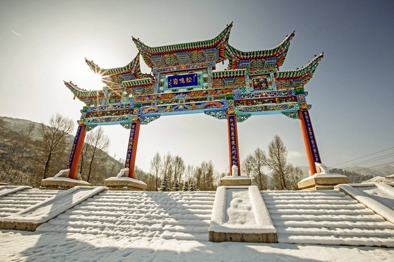 3. 景区简介:松鸣岩风景名胜区是河州八景之一,位于甘肃省临夏回族自治州和政县南端陡石关口的松鸣镇,是国家AAAA级旅游景区、国家级森林公园和省级风景名胜区,总面积33平方公里,顶峰海拔2736米。景区以青峰接云、古松参天、四季云雾缭绕为特色,明成化年间(1465-1487年)始建玉皇阁、菩萨大殿等庙宇群,现存殿宇亭阁掩映于松林之间,融藏传佛教、汉传佛教与道教文化于一体。景区内有乔灌木200余种,野生药材及花卉近400种,栖息蓝马鸡、红腹锦鸡等珍稀动物,四季景观分明,春有报春杜鹃,秋现层林尽染。每年农历四月二十六至二十八日举办松鸣岩“花儿”盛会,起源于明代成化年间,被列入国家级非物质文化遗产及联合国人类非遗名录。