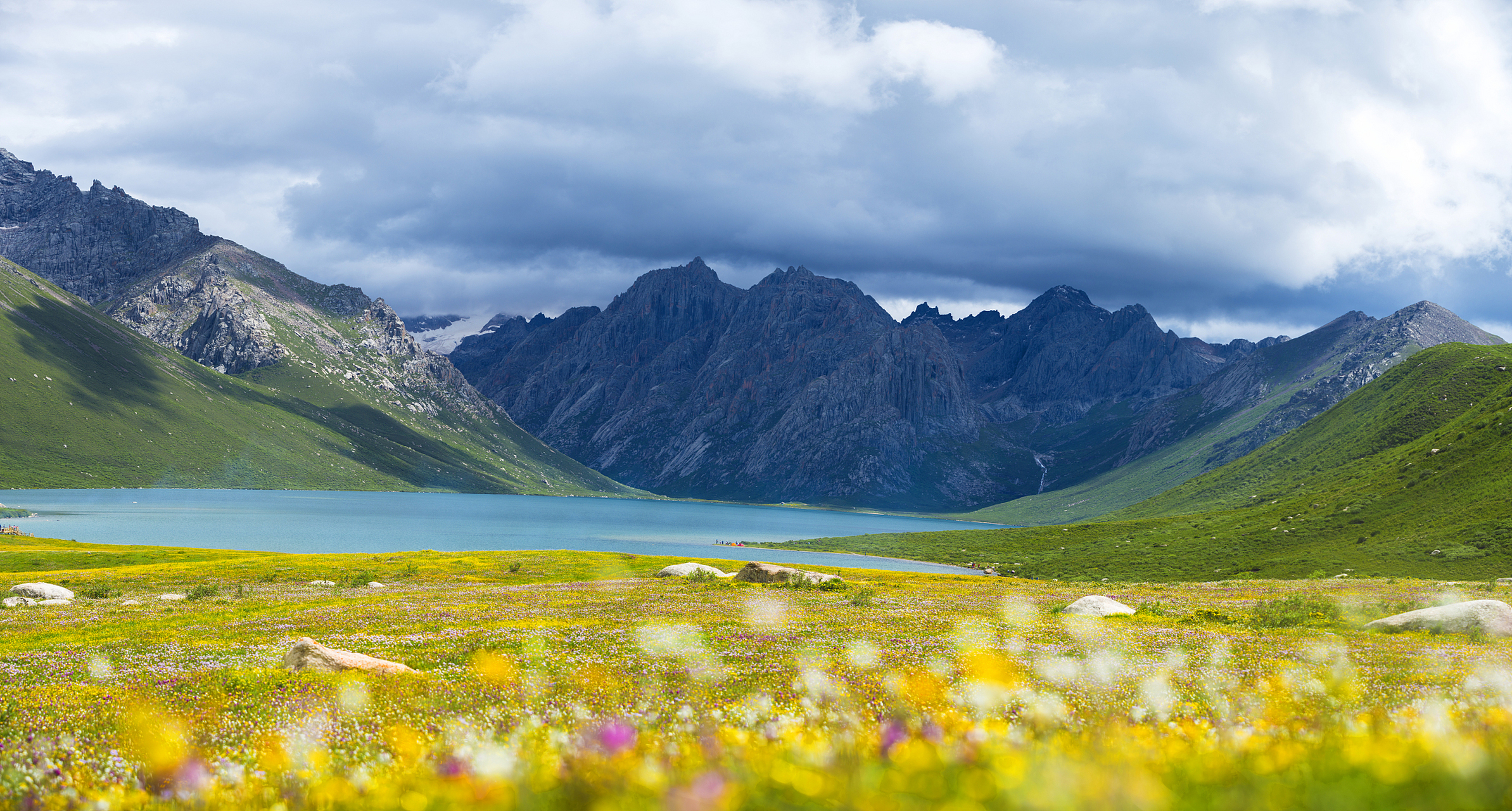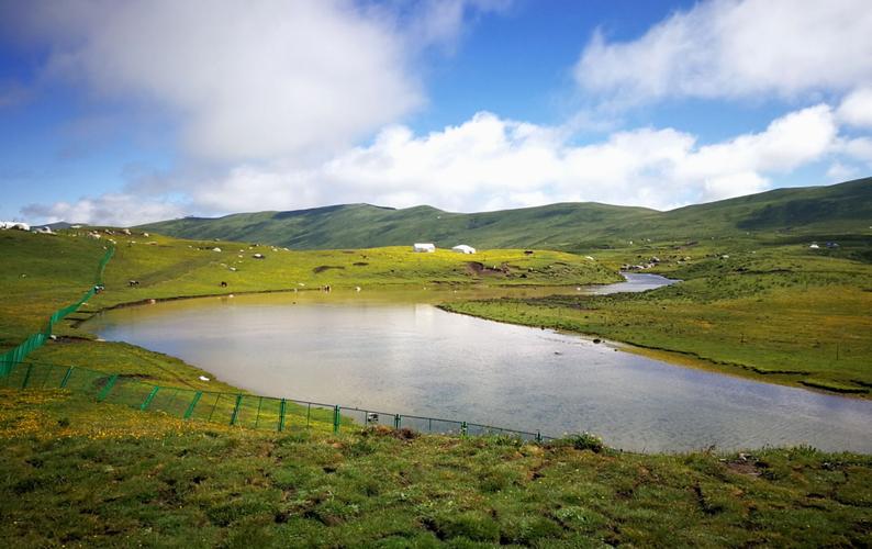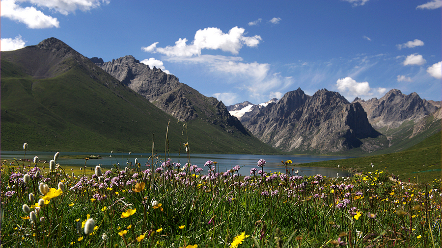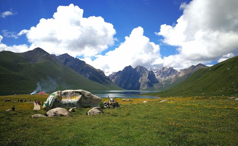 3.景区简介:年宝玉则,也称年保玉则,藏语意为“圣洁的松耳石峰”,又称果洛山,属巴颜喀拉山,位于青海省果洛藏族自治州久治县索呼日麻乡境内,主峰海拔5369米,是巴颜喀拉山的最高峰,2005年被正式批准为国家地质公园。其山峰长40公里,宽25公里,由无数海拔在4000米以上的山峰组成,冰雪融水形成年保仙女湖、妖女湖、日尕玛措等湖泊群。该区域与四川阿坝县接壤,是川甘青三省结合部的神山,相传为果洛诸部落发祥地。