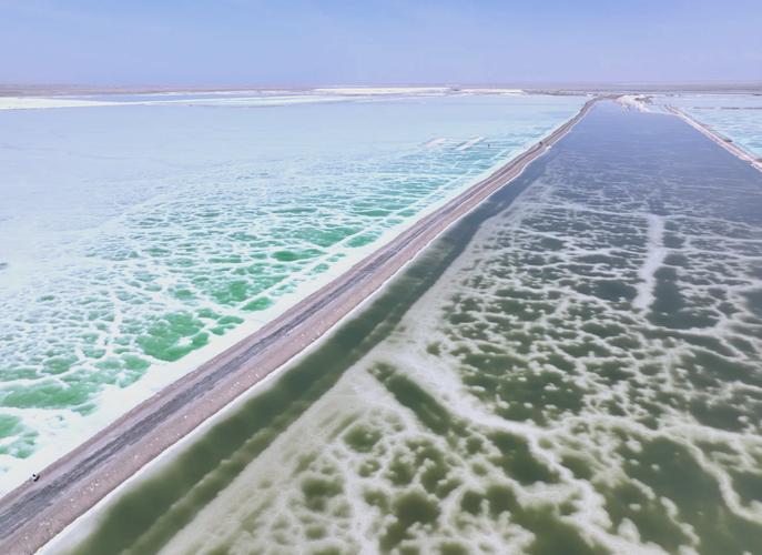 图片来源于网络,如有侵权,请联系告删茫崖翡翠湖,位于尕斯湖的东部边缘,茫崖行委花土沟镇西南侧。距政府所在地约32千米,南依巍峨的昆仑山,北靠阿尔金山,是一个富饶而美丽的人工盐湖。盐湖总面积约26平方千米,属硫酸镁亚型盐湖,底部有石盐层,一般厚5米,最厚处达9.68米,湖中盛产锂、钾肥、芒硝等盐化物,这片大小不等、形态迥异、深浅不一的盐池中的高浓度盐水在当地称之为“卤水”,是历经多年的盐湖开采而形成的采坑,由于所含的矿物质浓度的不同,也就形成了颜色多彩的景象,特别是风平浪静的时刻,宛若镜面般的散布在四处,在钾肥工人十几年精心的“养颜”下,为茫崖这个汉使张骞经过的丝路驿站和现实版的火星驿站增添了一抹柔情似水。