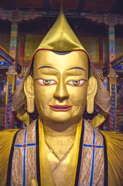 图片来源于网络,如有侵权,请联系告删贡萨寺位于青海省玉树藏族自治州治多县城西9公里处的嘉吉阿尼噶宝山坡,海拔4300米,是治多县唯一寺院,现有僧人300余名。该寺始建于12世纪,由拔噶举派创始人拔达玛旺秀的弟子秋杰次成帮巴创建,后经历直贡噶举派、格鲁派的教派演变。1981年寺院迁至现址,第十九世秋杰活佛主持修建大经堂、弥勒佛殿等建筑,保存《甘珠尔》《丹珠尔》等佛经,并设立藏医门诊及小学。寺内供奉的宗喀巴铜制镀金佛像总高35.32米,采用铜、黄金、天珠等材料制成,获“大世界基尼斯之最”证书。2013年贡萨寺旧址与宗喀巴大殿被列为第七批全国重点文物保护单位。