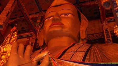 3.景区简介:贡萨寺位于青海省玉树藏族自治州治多县城西9公里处的嘉吉阿尼噶宝山坡,海拔4300米,是治多县唯一寺院,现有僧人300余名。该寺始建于12世纪,由拔噶举派创始人拔达玛旺秀的弟子秋杰次成帮巴创建,后经历直贡噶举派、格鲁派的教派演变。1981年寺院迁至现址,第十九世秋杰活佛主持修建大经堂、弥勒佛殿等建筑,保存《甘珠尔》《丹珠尔》等佛经,并设立藏医门诊及小学。寺内供奉的宗喀巴铜制镀金佛像总高35.32米,采用铜、黄金、天珠等材料制成,获“大世界基尼斯之最”证书。2013年贡萨寺旧址与宗喀巴大殿被列为第七批全国重点文物保护单位。
