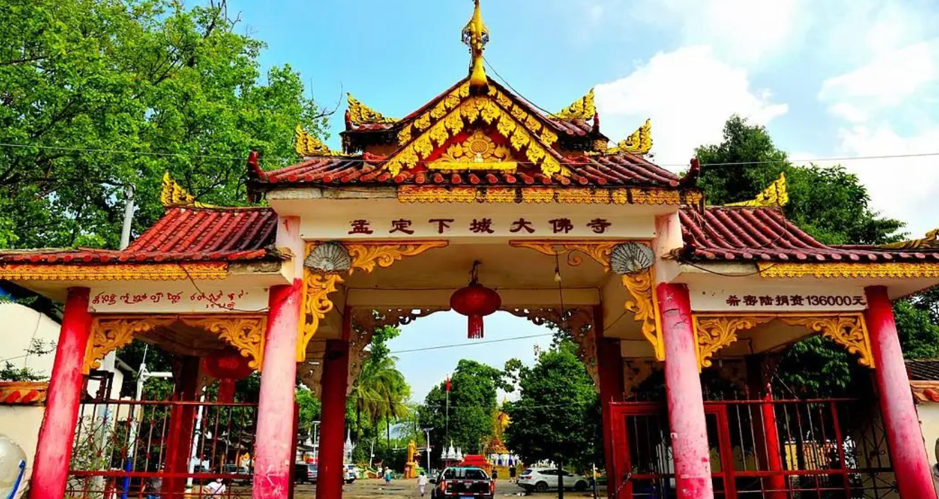 3、景区简介:孟定南亚风情旅游区以傣族文化为基调,融合东南亚风情,核心景点包括芒团傣族村、洞景佛寺和南汀河风光带。游客可体验傣族手工造纸(国家级非遗)、参与泼水节狂欢,或乘竹筏游览南汀河热带河谷。景区内还设有特色夜市,提供傣味烧烤、香茅草烤鱼等美食,夜晚可欣赏傣族“嘎秧舞”表演。