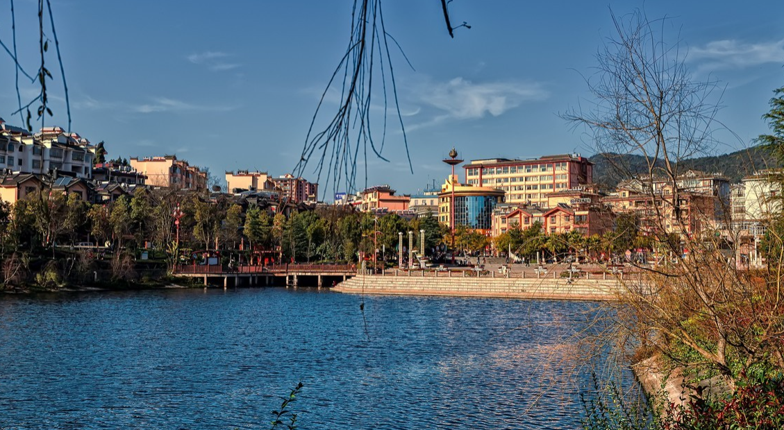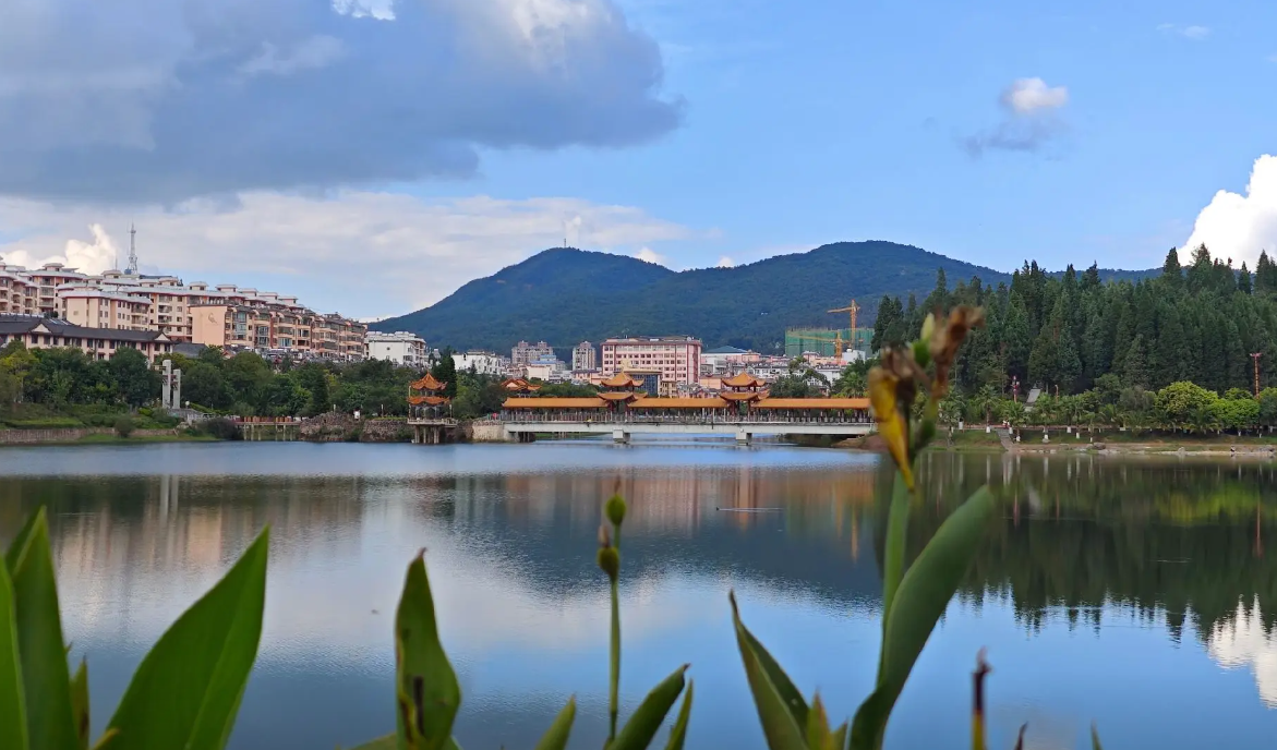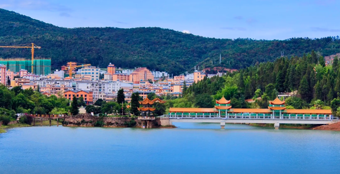 3、景区简介:查姆湖水利风景区是国家4A级旅游景区,位于双柏县城核心区,依托小庙河水库工程而建,总面积9.2平方公里,水域面积60公顷。景区以查姆湖为中心,串联起森湖公园、生态湿地、老黑山森林公园等自然景观,形成“城水相映、山水相依”的独特风貌。景区内设环湖生态绿廊、文化广场、游步道等设施,夜晚的“查姆之眼”灯光水舞秀更是以现代科技展现彝族创世神话,成为游客必打卡的视听盛宴。作为双柏县文旅融合的标杆,查姆湖不仅是市民休闲胜地,更通过沿街建筑改造和彝族文化元素融入,成为展示查姆文化、虎文化的重要窗口。