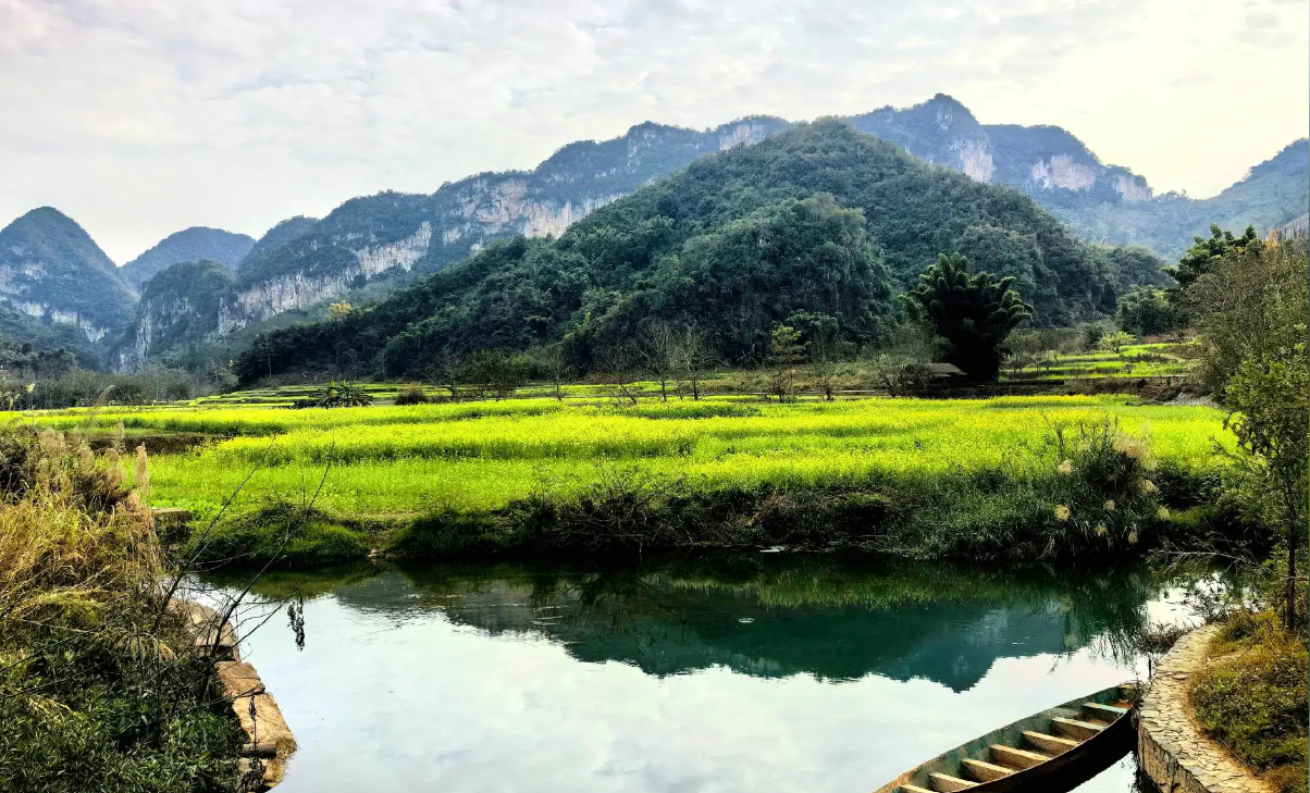3、景区简介:国家4A级景区,以陶渊明笔下“桃花源”为原型打造。游客需乘船穿越千米溶洞进入村落,村内壮族干栏式建筑、千年榕树、稻田水系构成“土地平旷,屋舍俨然”的田园画卷。核心体验包括乘竹筏穿越溶洞、壮族服饰拍照、参与三月三歌节。