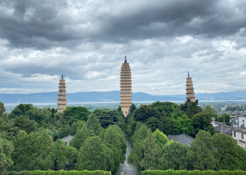 3、景区简介:崇圣寺三塔是大理唯一5A级景区,始建于南诏国时期,主塔千寻塔高69.13米,为唐代密檐式砖塔典范,南北两小塔为宋代八角形砖塔,三塔呈鼎立之势,背靠苍山,面朝洱海,形成“永镇山川”的壮丽景观。景区包含崇圣寺建筑群(重建于2005年)、三塔倒影公园、文物陈列馆等,可深度体验南诏佛教文化与建筑艺术。三塔倒影公园利用水池倒映苍山塔影,成为经典摄影机位。