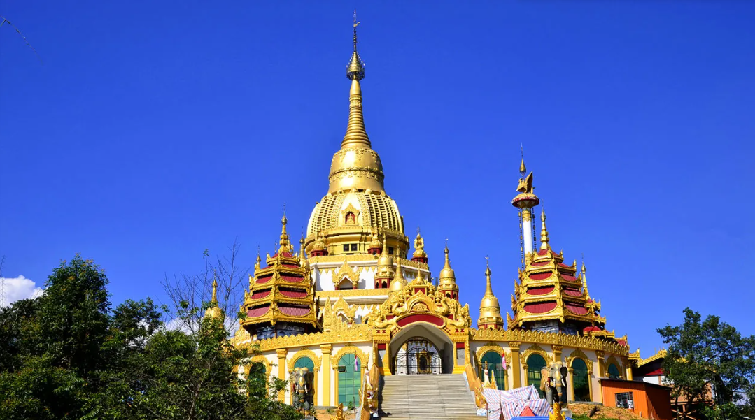 图片来源于网络,如有侵权,请联系告删勐焕大金塔是亚洲最大空心佛塔,坐落于雷牙让山之巅,塔高76米,主体为八角四门形制,塔顶重达2.3吨的纯金金顶在阳光下熠熠生辉。景区融合南传佛教文化,登塔可俯瞰芒市全景,与勐焕银塔遥相呼应,形成“金银双塔”奇观。塔内供奉佛像及舍利子,每年泼水节期间举办盛大祈福活动,吸引海内外游客。