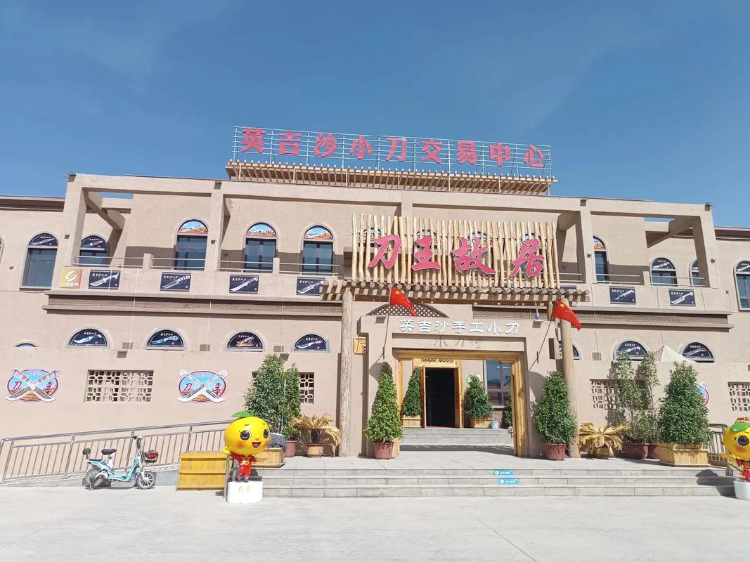 3、景区简介:英吉沙县小刀博物馆是首批新疆维吾尔自治区特色博物馆,2022年5月18日获自治区级命名。该馆位于英吉沙县芒辛镇喀拉巴什村,建筑面积4100平方米,以国家级非遗英吉沙小刀工艺保护传承为主旨,按“刀史、刀艺、刀魂、刀藏”脉络设置展区及纪念品售卖区,融合收藏、展示、保护、教育功能。作为新疆非物质文化遗产保护重要载体,博物馆通过实物陈列、工艺演示及历史文献,系统呈现英吉沙小刀千年发展历史与文化价值。其设立对维吾尔族传统手工艺传承及文旅融合发展具有积极作用,同时定位为非遗宣教中心、产业宣传窗口、展览交流平台