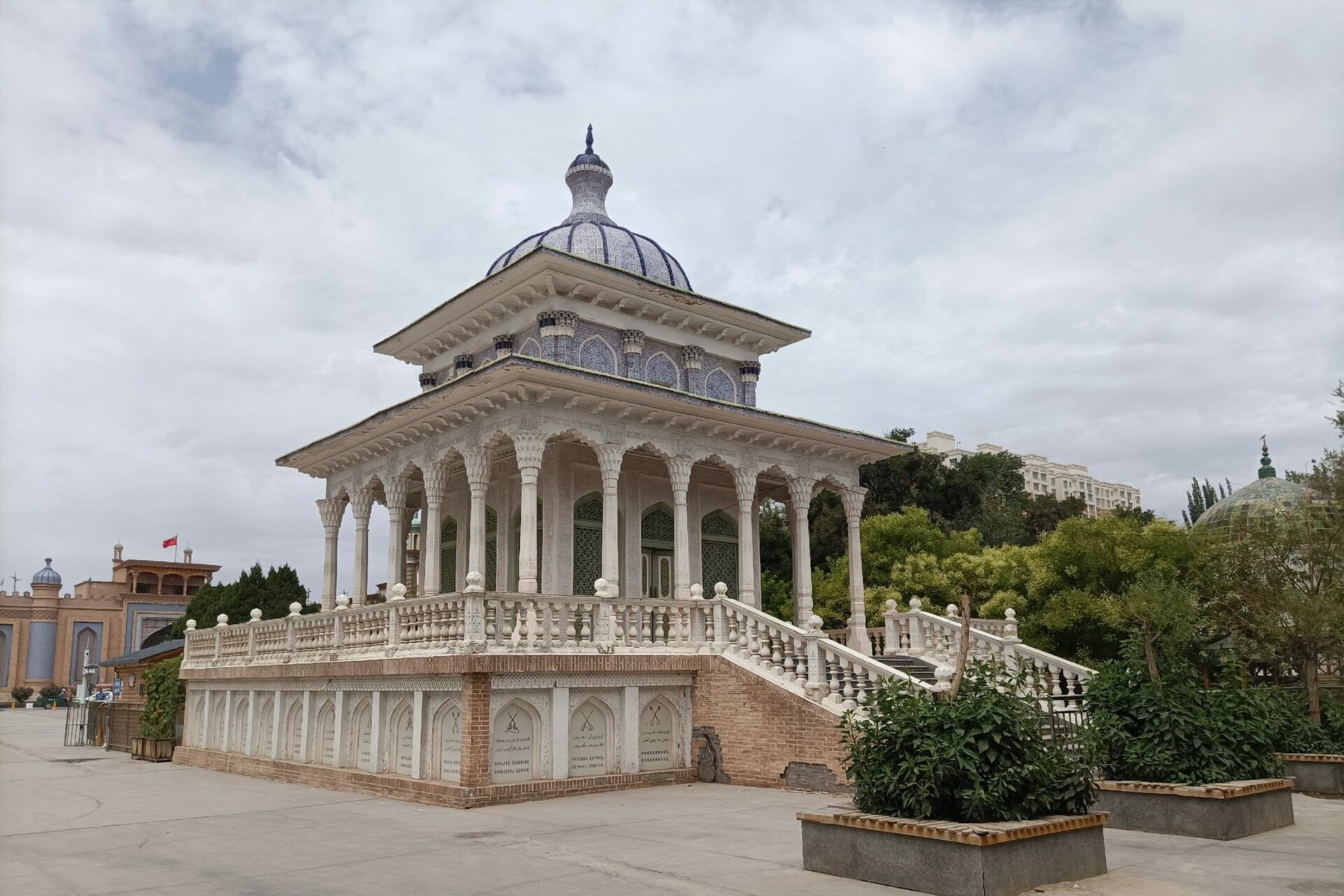 图片来源于网络,如有侵权,请联系告删叶尔羌汗国王陵,又称阿勒屯麻扎,位于新疆维吾尔自治区喀什地区莎车县老城和新城之间的阿勒屯德尔瓦兹以北,是叶尔羌汗国时期的王陵,总面积约1.5万平方米,始建于明嘉靖十二年(1533年)。叶尔羌汗国王陵在布局和图案装饰等方面,体现了伊斯兰优秀建筑艺术。王陵及清真寺由三部分组成,西边是阿勒屯鲁克清真寺,东边是阿勒屯水池,中间是阿勒屯麻扎(意为纯金的陵墓)。阿勒屯麻扎又分为几个单独部分。埋葬汗王和他们的宗教信徒的墓地,由砖墙和木栅栏围起来,筑有琉璃砖装饰的大门,大门内是全用砖砌成的一排排坟墓,墙和坟墓外面,是用各种纹样图案的石膏花和有各种铭文的花砖装饰。前方插着各种彩旗。居室单独修建,整个麻扎有浓郁的宗教色彩。叶尔羌汗国王陵及清真寺除葬有苏里唐·赛义德汗之外还葬有阿布杜热西德汗、阿布杜克里木汗、穆罕默德汗、艾哈迈特汗、阿布杜里提甫和他们的子孙及木卡姆学者、诗人阿曼尼莎汗。叶尔羌汗国王陵对于研究叶尔羌汗国宫廷制度、王位继承、君王葬礼具有较高的价值,也是研究维吾尔殡葬礼仪的物质材料,具有较高的建筑艺术价值,是维吾尔建筑史的经典之作。