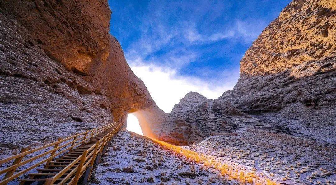 图片来源于网络,如有侵权,请联系告删阿图什天门是位于新疆阿图什市上阿图什镇西天山南脉的天然石拱门景观,地理坐标为东经75°31'22-75°31'47,北纬39°39'29-39°40'11。该天门宽约100米,高约500余米,呈"∩"字型或"Π"字型,为世界上自然形成的最高拱门。2005年被美国《ADVENTURE》杂志列为全球25条最新探险线路之一,2018年央视《地理·中国》栏目曾拍摄《神天之门》纪录片。天门景区为国家AAA级旅游景区,阿图什天门景区属温带大陆性干旱气候,夏季凉爽、天气多变、昼夜温差大。景区内部沿途可见约260万年前经风雨侵蚀形成的象形山体,如金猴守岁、日月门、天地轮回、一线天、小天门等自然景观。阿图什天门雄奇险峻、千沟万壑、鬼斧神工、幽深境秘,是罕见的高海拔穿山溶洞,也是世界上自然形成的最高拱门,被评为全球最新的25条探险线路之一。