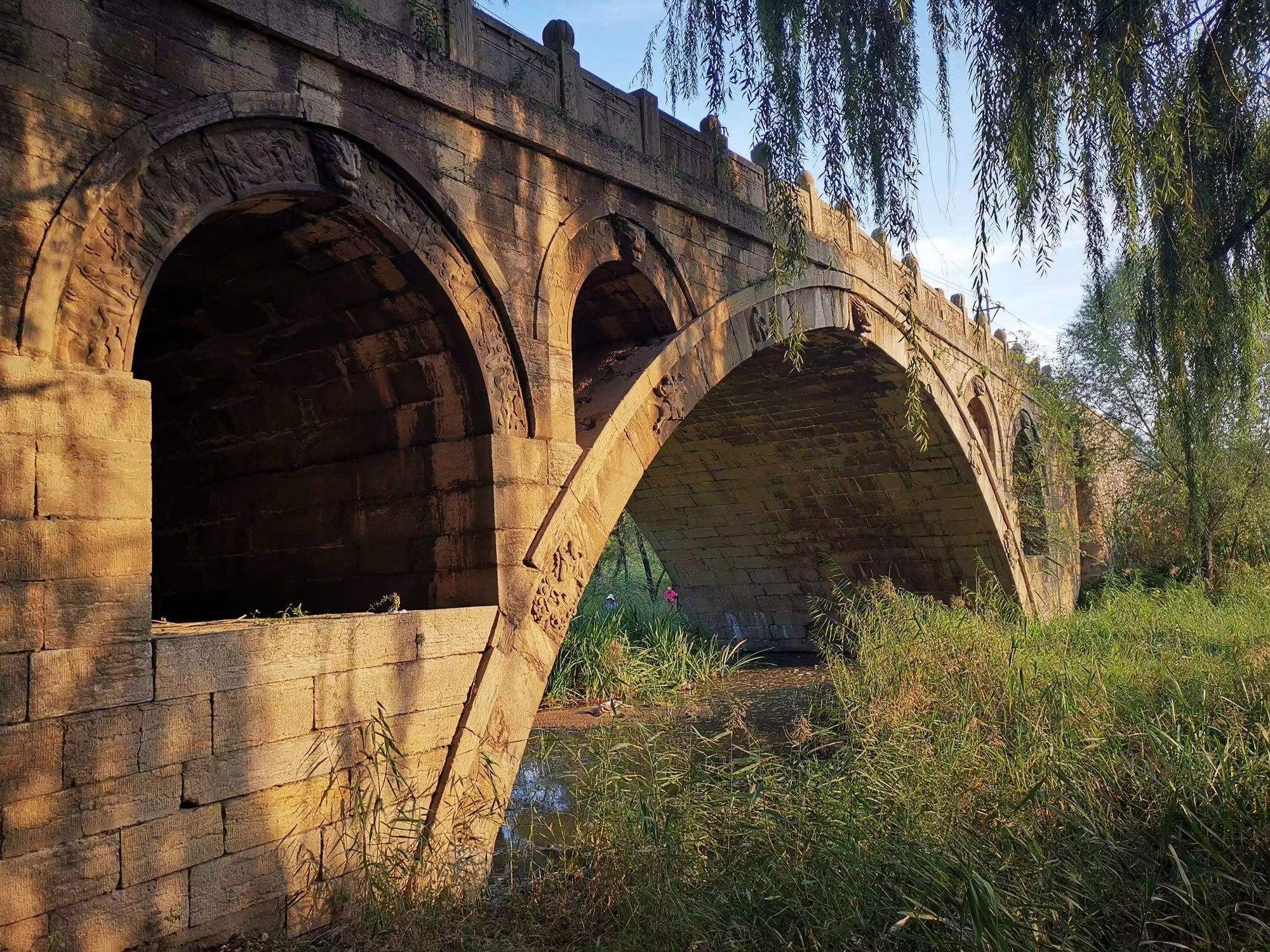普济桥:曾名南石桥,俗称南桥,建造于金泰和三年。原平普济桥为敞肩石砌拱桥,南北走向,主桥全长30米,宽8米,高7米。两端各有一引桥,二小券,以分洪水。大小券口均为石料横旋,券口边均有造型精美的石刻浮雕。