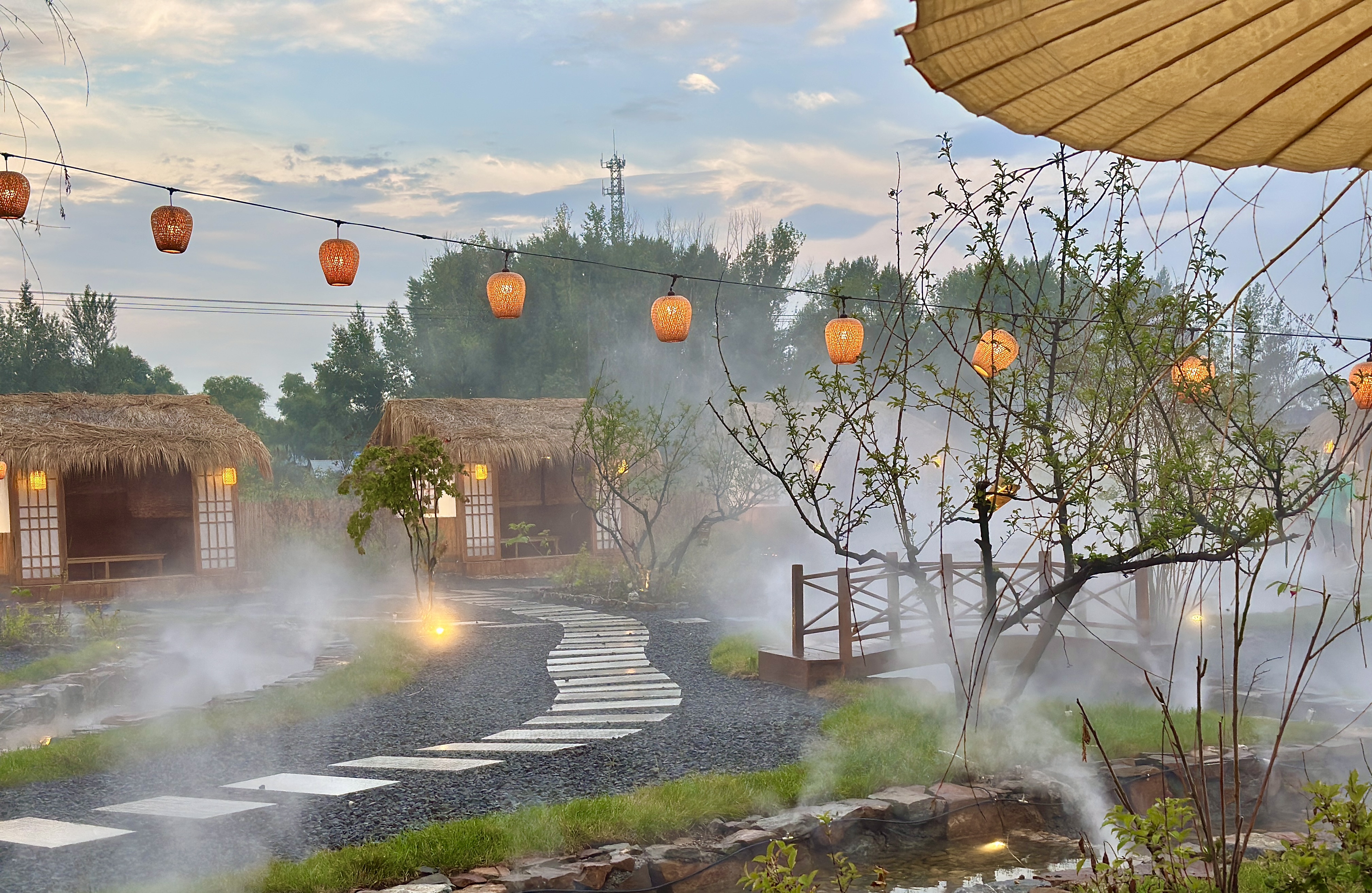 新阳小镇:这里有田园风的木屋,绿树成荫、优雅恬静,游客走过流水墙,眼前豁然开朗,青石衬托着浅白色的大理石踏步,蜿蜒曲折的小溪在晨雾的作用下仙气飘飘,游客可以随心所欲地围炉煮茶、炭火烧烤。